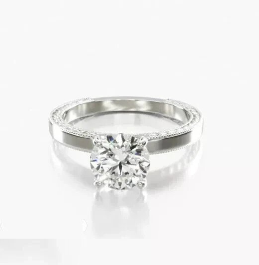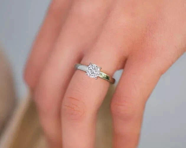 Round Cut Simulated Diamond Engagement Womens Stunning Ring 14kWhite Gold Plated