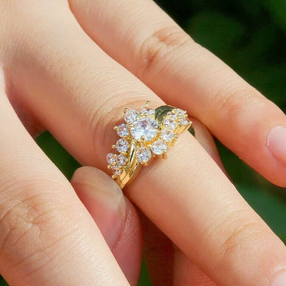 Round Cut Simulated Diamond Gorgeous Engagement Band Ring 14k Yellow Gold Plated