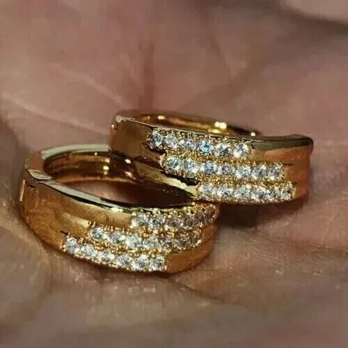 Round Cut Simulated Diamond Women's Fancy Hoop Earring 14K Yellow Gold Plated