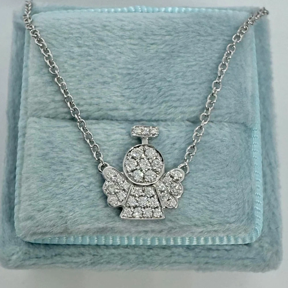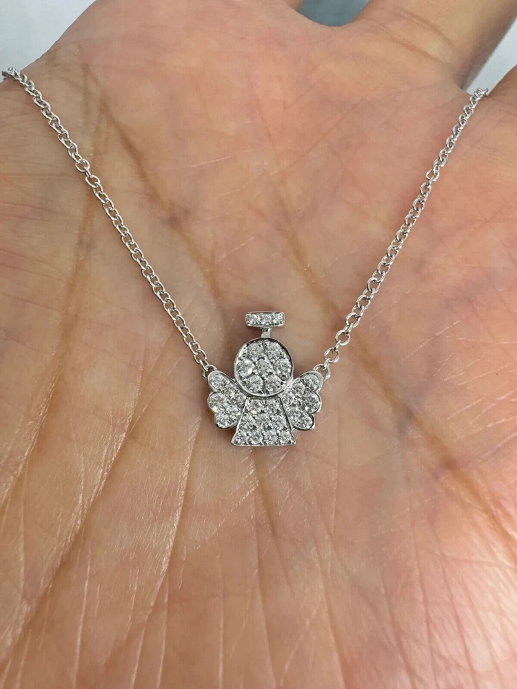 Round Cut Simulated Diamond Women's Stunning Angle Pendant 14K White Gold Plated