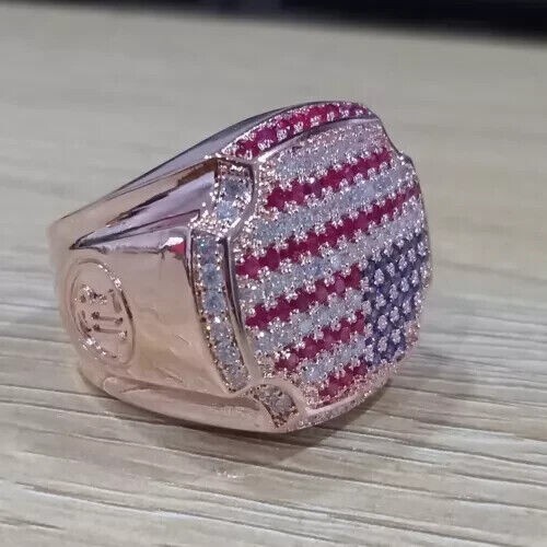 Round Cut Simulated Pink Ruby Men's Stunning Band Ring In 14k Rose Gold Plated