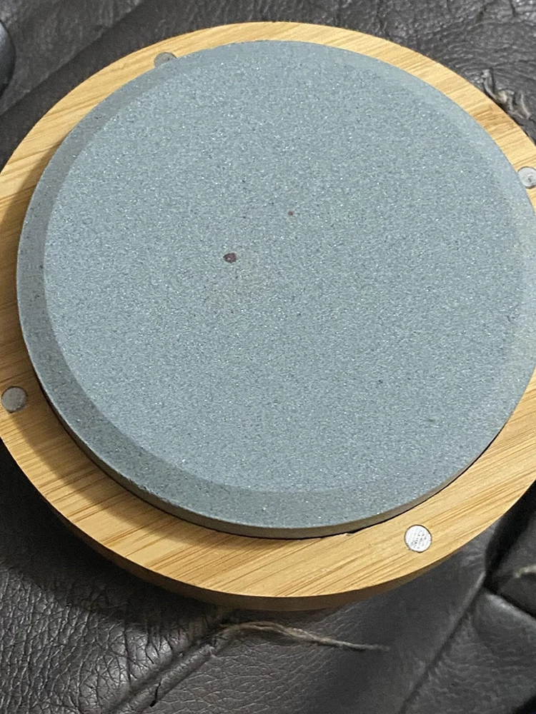 Round Dual Grit Sharpening Stone Axe Blade Edge Sharpener Lansky Puck Hand Tool Material Carborundum, Stone Color 120/280 Grit Product Dimensions 5.11"L x 5.11"W x 1.77"H Grit Type Coarse, Fine High Quality: Axe sharpening puck is made from high quality silicon carbide material, Which has perfect grinding effect with fast speed. And, this material has good corrosion resistance and good grinding effect,portable and durable. Large Size:Large axe sharpening stone, diameter 3.9 inches, easy-to-grip, contoured shape provides for safe. Its size is convenient for you to have a firm grasp when using it. Multi-Purpose Stone: This axe sharpening kit is ideal for repairing and consolidating lawn mower blades, machetes, axes, spades, kitchen knives, hatchet sharpener, throwing ax sharpener stone, knife sharpener, camping sharpening stone, machetes, axe blades, shovels, spades and more. Dual-Side Design:Double-sided grit 120/280 puck sharpener with circular design, Suitable for repairing outdoor tools and relatively dull knives. 120 grit (black) can quickly sharpen blunt edges and repair gaps, and 280 grit (green) can improve the smoothness and sharpness of the knife surface. Bamboo Box:The unique synthetic process makes the bamboo box not easy to crack. The closing part is equipped with powerful magnets. Therefore, the box can be closed lightly and not easy to open. Such exquisite workmanship allows the bamboo box to store other items or as home decorations. The closing part is equipped with 4 powerful magnets. ALIGN the magnets, SO the box can be closed lightly and not easy to open. Diameter 3.9 inch, easy-to-grip. The elegant Bamboo box can be used not only for the whetstone, but also for the small items you like. NOTE:Keep the whetstone DRY when you put it back in box. NO EXPENSIVE OIL NEEDED Axe/Tools sharpener needs only Water, so no need for expensive oil. The slurry that forms on top of the water stone is what is doing the work. So while you are sharpening your axe/tools, don’t wipe the water off, also before you start using a water stone, make sure you soak it into the water. EASY TO USE Lock the tool in a vice or hold it firmly in your hand. Move the whetstone in a circular motion along the entire cut edge. It is best to grind with an angle of 15°~20°. SHARPENER TOOL Whether it is an axe, hatchets, machetes shovels, lawnmower blades, knives, etc., every homeowner, camper, and woodworker needs an effective tool sharpener like a sharp pebble axe dual grit sharpener