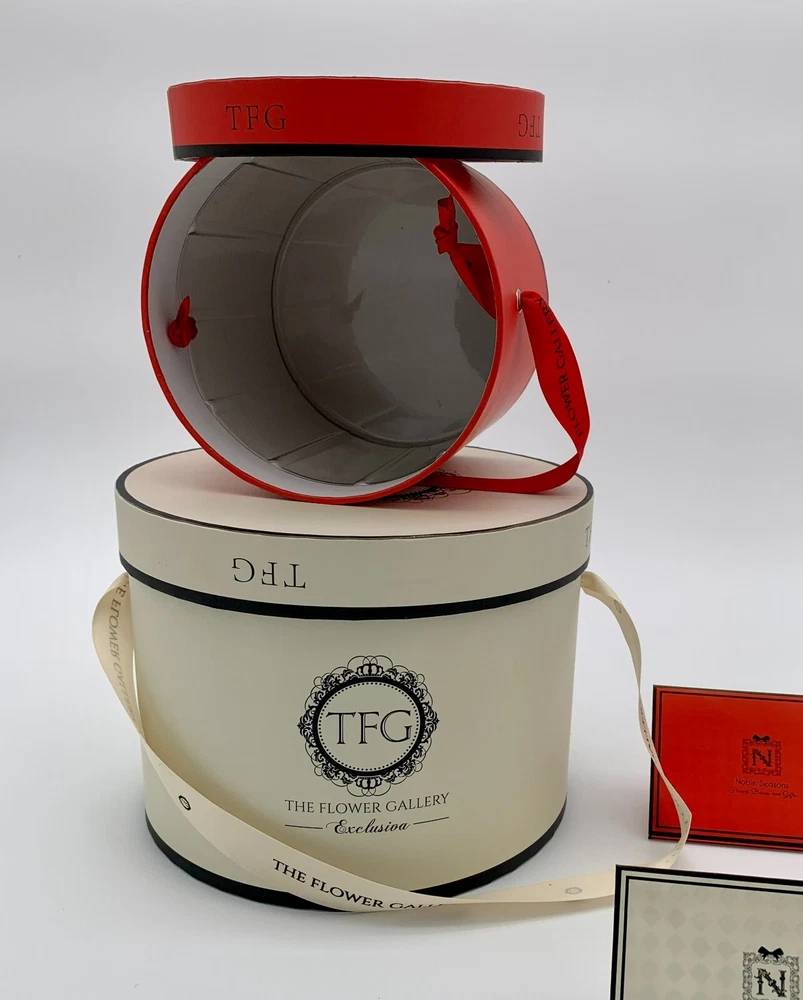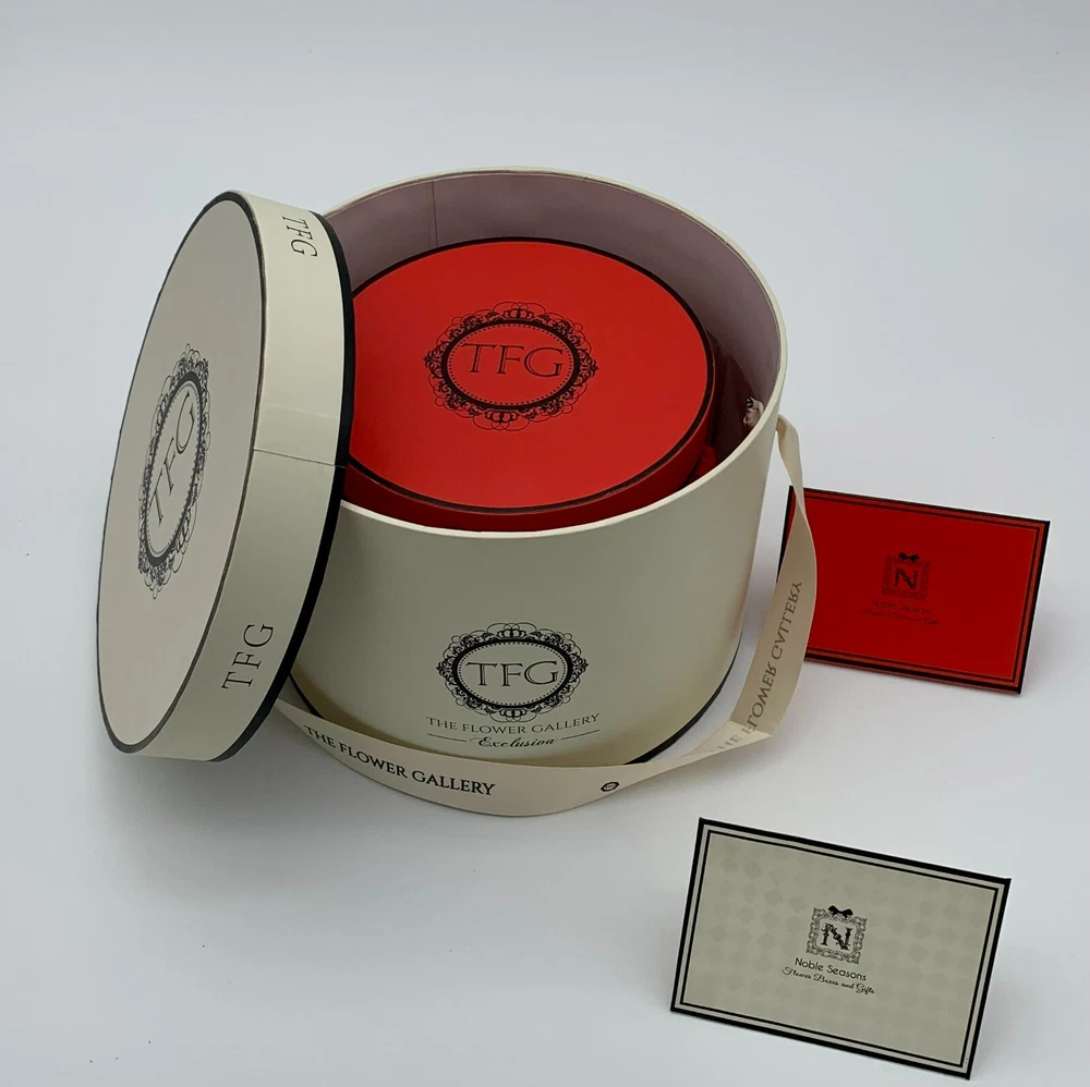 Round Flower Box, Floral Gift box, Set of 2 pcs, with Lids and greeting card, Premium Quality d: 8"x5,5" , 5,5"x5" This box can be used as a flower vase and also as a gift box.