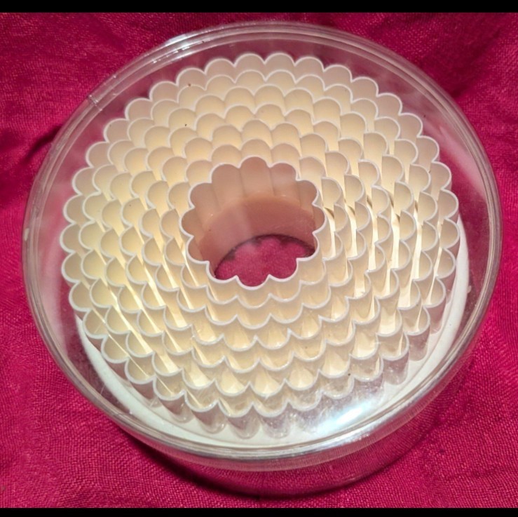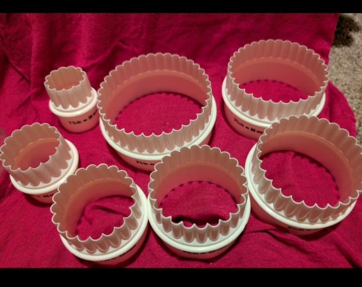 The Round Fluted Cookie Cutters Nesting Set is a 6-piece set of cookie cutters designed for baking and decorating homemade cookies, biscuits, and fondants. Made of durable plastic, these round-shaped cutters are white in color and feature a fluted design for added detail. The nesting feature allows for easy storage and organization, making them a convenient addition to any kitchen or baking workspace. Perfect for creating beautifully cut cookies and achieving a consistent and professional look in your baked goods.