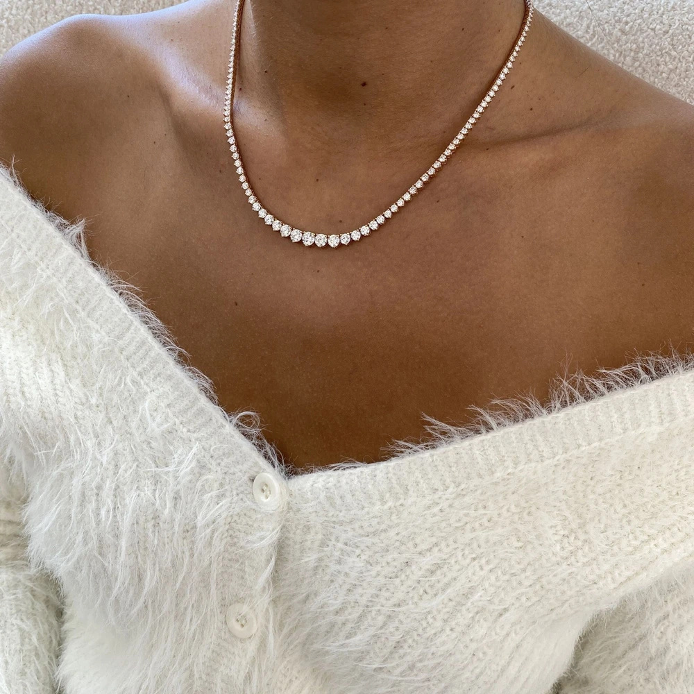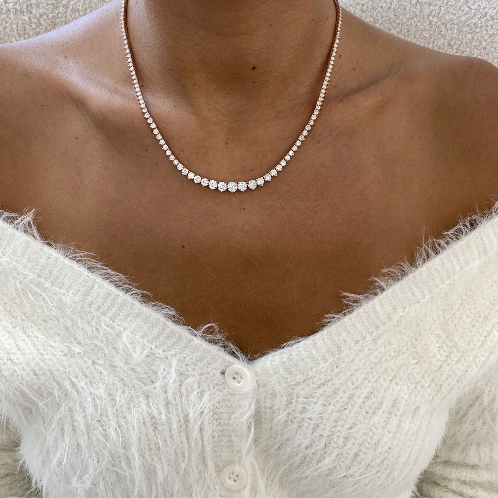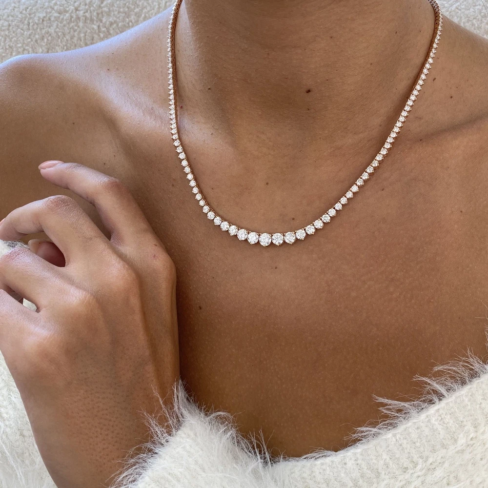14K Rose Gold Tennis Necklace Round Labcreated Diamond 9.6ct F/VS Bookmark Our Store Ask seller a question Engagement Rings Diamond Solitaire Rings Diamond Rings with Accents Diamond Ring Sets Wedding Bands Earrings Pendants Bracelets Monthly Deals MENU Diamond Solitaire Rings Diamond Rings with Accents Diamond Ring Sets Wedding Bands Earrings Pendants Bracelets Monthly Deals Bookmark our store Follow This Seller Ask Seller a Question 14K Rose Gold Tennis Necklace Round Labcreated Diamond 9.6ct F/VS Item Includes FREE Certificate of Authenticity FREE Worldwide Shipping FREE Elegant Gift Box Ask Seller a Question Necklace Details Setting Style: Prong Total Carat Weight: 9.6 Carat Metal Purity and Type: 14K Rose Gold Approx. Gold Weight: 19.30 Available Size: [PF_sizes-txt] Certificate Lab: GGL Inventory Number: EK037N02-R Stones Specifications Stone Type: Lab-grown Diamond Shape: Round Diamond Carat Weight: Carat Color / Clarity: F / VS Treatment: Not-Enhanced Side Stones Stones Type: Diamond Shape: ROUND Diamonds Carat Weight: 9.6 Color / Clarity: F / VS Treatment: Not-Enhanced Product Description 14K Rose Gold Tennis Necklace Round Labcreated Diamond 9.6ct F/VS Monthly Deals Best Prices on eBay. Up to 70% Off Retail Upgrade Options 18K Yellow Gold OR 18K White Gold Free Resize Contact us if you need size customization Round Princess Cushion Oval Asscher Emerald Pear Radiant Marquise Heart Solitaire Rings Rings with Accents Wedding Bands Diamond Ring Sets Diamond Earrings Diamond Bracelets Diamond Pendants Montly Deals Payment & Shipping Get your purchases delivered to your doorstep for free! Most items will be delivered within 30 days. Return Policy We guarantee your satisfaction and offer a 60-day money-back return (or exchange) policy. If, for any reason, you are unsatisfied with your purchase, please contact us first before opening up a case or leaving feedback so that we can make things right! We are here to assist YOU! Appraisal {{APPRAISAL}} About us We are Glam&Gems, a diamond jewelry company based in New York. We offer our own brand of products. For decades, our company has been manufacturing beautiful and high-quality jewelry. Our jewelry can be found in many of the most prestigious jewelry stores on Fifth Avenue and at luxury stores worldwide. Our specialised production of lab diamonds, which was our first step in the process, has made us stop using non-ethical diamonds that harm the environment and the planet. We produce ethical, conflict-free, high-quality laboratory diamonds at the highest level for you today. Glam&Gems also produces your diamonds and designs your jewelry. Our goal is to provide you with the highest quality jewelry for your deepest satisfaction See Other Items Newsletter Signup Follow This Seller Ask Seller a Question GIA Gemological Institute Of America IGG Jewelry Appraisal IGI All Imagery & Content © 2017 Diamonds Forever Boutique | Listing Template by Glam & Gems