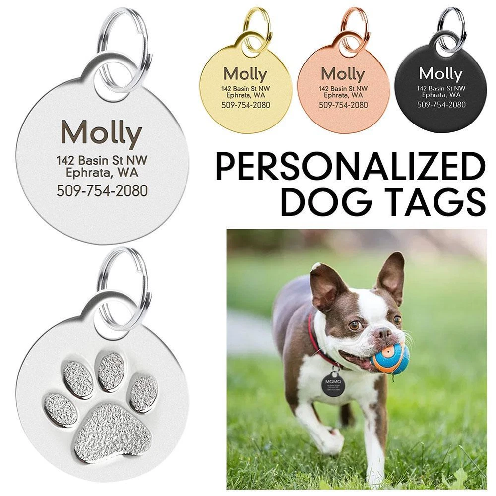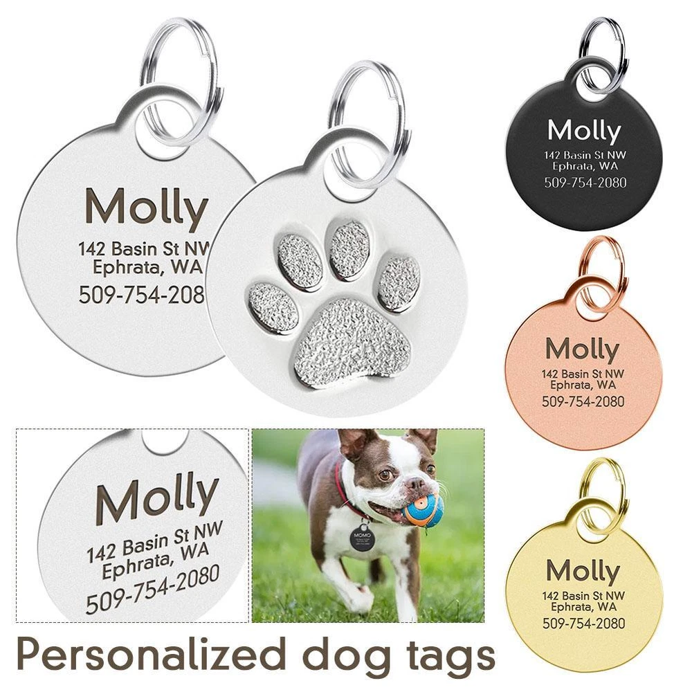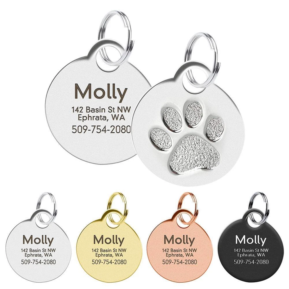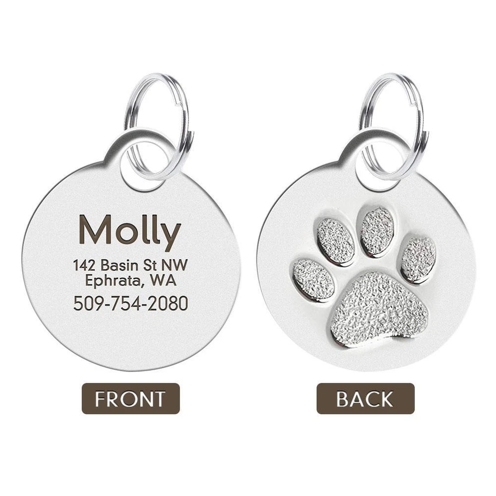 Round Paw Personalised Engraved Dog Tag Kitten Cats Puppy Pet Collars ID T