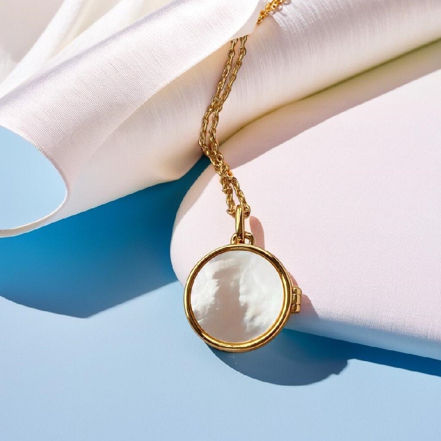 Elegance meets personalisation with this Gold Plated Round Pearl Locket Necklace, a thoughtful gift for someone special or a chic addition to your own jewellery collection. Crafted with a yellow gold-plated 925 sterling silver base, this necklace features a charming round imitation pearl as the centrepiece, complemented by a secondary faux pearl stone. The 45 cm cable chain ensures a comfortable fit, while the lobster clasp closure provides secure fastening. The necklace is ideal for various occasions, be it an anniversary, birthday, confirmation, or graduation, making it a versatile present for those milestones. Hallmarked for authenticity and boasting an eye-clean gemstone clarity grade, this piece is a blend of beauty and durability. The timeless round pendant shape and bar setting style offer an understated yet sophisticated look, suitable for both beach getaways and fashion-forward outings.