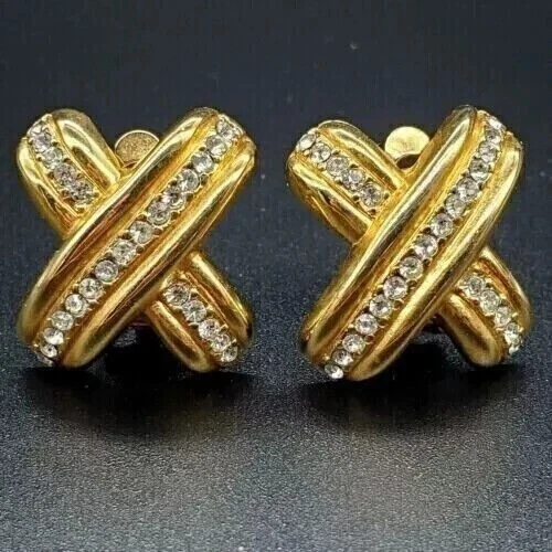 Round Simulated Diamond Stunning Initial "X" Stud Earring 14k Yellow Gold Plated