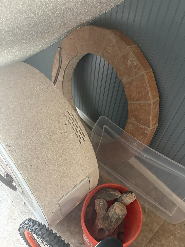 Round Stone Fire Pit Modern Outdoor Weather Resistant Wood Fuel