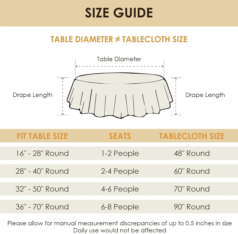Store New Arrivals Add to Favorite View Feedback Contact Round Tablecloth Water and Stain Resistant Washable Table Cloth Selected Wrinkle Free Polyester Circular Table Cover for Dining, Parties, Camping (60 Inch, Yellow) Description Unit Count 1.0 Count Style Perfect for Daily Use Seasons All-Season Number of Items 1 Color Yellow Pattern Solid Material Polyester Country of Origin China Number of Sets 1 Item Weight 10.2 ounces Shape Round Corner Style Rounded Recommended Uses For Product Indoor/Outdoor Occasion Party, Buffet, Wedding, BBQ, Festival Included Components 1 Piece Round Tablecloth Special Feature Spill & Oil Proof, Stain Resistant, Shrink-proof, Water Resistant, No Fade Product Dimensions 60"L x 60"W Product Care Instructions Machine Wash Size 60" Round (Tables up to 44" DIA) PACKAGE CONTAINS - 1 piece round table cloth measuring 60 inches in diameter. Please refer to the size chart before purchasing. WATER & STAIN RESISTANT - The tablecloth is treated with a safe, odorless waterproof coating. Liquids, spills and stains can be easily wiped clean with a damp cloth or sponge. SELECTED DURABLE FABRIC - Crafted from premium polyester material, this table cover is heat-resistant and can protect your furniture from scratches, stains, and sun damage effectively. MULTIPLE COLORS & SIZES - 15 colors and 14 sizes to suit various occasions! Including family dinners, birthday parties, weddings, banquet, picnic, BBQ, camping. The table top cover creates a sense of simplicity and refinement, adding a stylish atmosphere and bring vitality to space. MACHINE WASHABLE – Reusable, colorfast, wrinkle free. Low-temperature drying and ironing, or hanging. Please NOT bleach. Product Description ABOUT US We offer the best prices around on high quality products. Our E-store includes media such as books, movies, music and games while offering electronics, toys, sporting apparel, clothing, tools, general home, garden items and more. SHIPPING We are always working hard to ensure your package arrives as soon as possible. Please understand that some factors like weather, high postal traffic, and the performance of shipping companies are outside of our control. We offer free shipping to the lower 48 states and ship within 2 business days of payment, usually sooner. We do not accept P.O. Boxes. Please provide a physical address. For shipping outside of the continental USA, we only use eBay's Global Shipping Program.The item is shipped to KY and then sent to the rest of the world. International customers are responsible for all duties and taxes. Continue to check out in order to calculate costs for shipping the item to your country. Messages regarding eBay's Global Shipping Program MUST be directed at eBay EXCLUSIVELY. RETURNS We offer a 30-Day Return Policy on items which you are not completely satisfied with. You have the option for a full-refund or an exchange of the item. No returns are available on items shipped outside of the USA. PAYMENT We accept PayPal. CONTACT US This page content is yet to come Please ad us to your favorite seller and visit again later Thank You CUSTOMER SATISFACTION We try our very best to make sure every customer is completely satisfied. If there's a problem, message us! We're happy to help. WE ACCEPT Copyright © 2021 AutoDS. | All Rights Reserved