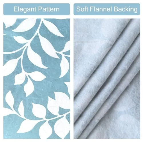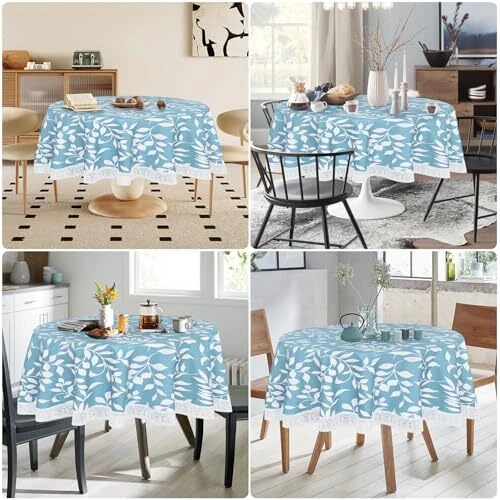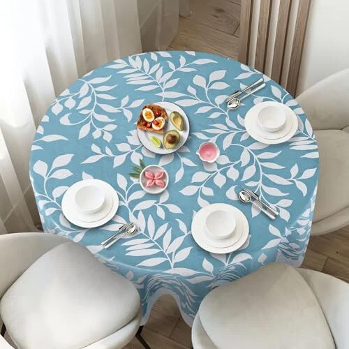 Round Vinyl Tablecloth, 60 Inch Round Tablecloth with Flannel 60" Blue Leaves