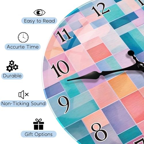 Return Policy Fast Delivery Trusted seller Round Wall Clock Silent Non-Ticking Battery Operated Glass Decorative Clock 12 Inch, Abstract Geometry Home Decor for Living Room, Kitchen, Bathroom, Bedroom, and Office Product Description Universal Size: 12" x 12" x 0.2", classic round shape with large size. Wide viewing angles and large numerals, without glass cover, eliminating glare. Material: Wall clock made of tempered glass dial, bright and clear color, frameless design. Especially suitable for quiet spaces such as baby room/study room/meditation room, creating a zero-interference time field No ticking and easy to hang: No ticking, silent scanning movement (requires 1 AA battery - not included). Easy to hang on the wall (hook included). Accurate time, long service life, stable performance. Easy to read: Wall clocks with different patterns are equipped with pointers of different colors, which is convenient for you to read in any corner of the room. Widely used: Fashionable timekeeping, perfect for living room, bedroom, kitchen, bathroom, classroom, guest room, office, restaurant, cafe, library or any color wall. Shipping Returns Payment Shipping Shipping is FREE to all addresses other than APO/PO boxes in the lower 48 states. All our stock ships from US-based warehouses. Shipped via USPS or UPS (depending on location and package weight) Unless stated otherwise, all orders will ship within 24-72 hours of your payment being processed. Check our feedback to see the great reviews of FAST shipping we offer. Returns Seller does not accept returns Payment We currently accept payment via eBay managed payments only. Once payment is cleared, we will dispatch your shipment within 1-3 business days. Please refer to the "Shipping" tab for more information regarding shipping speed to your destination.