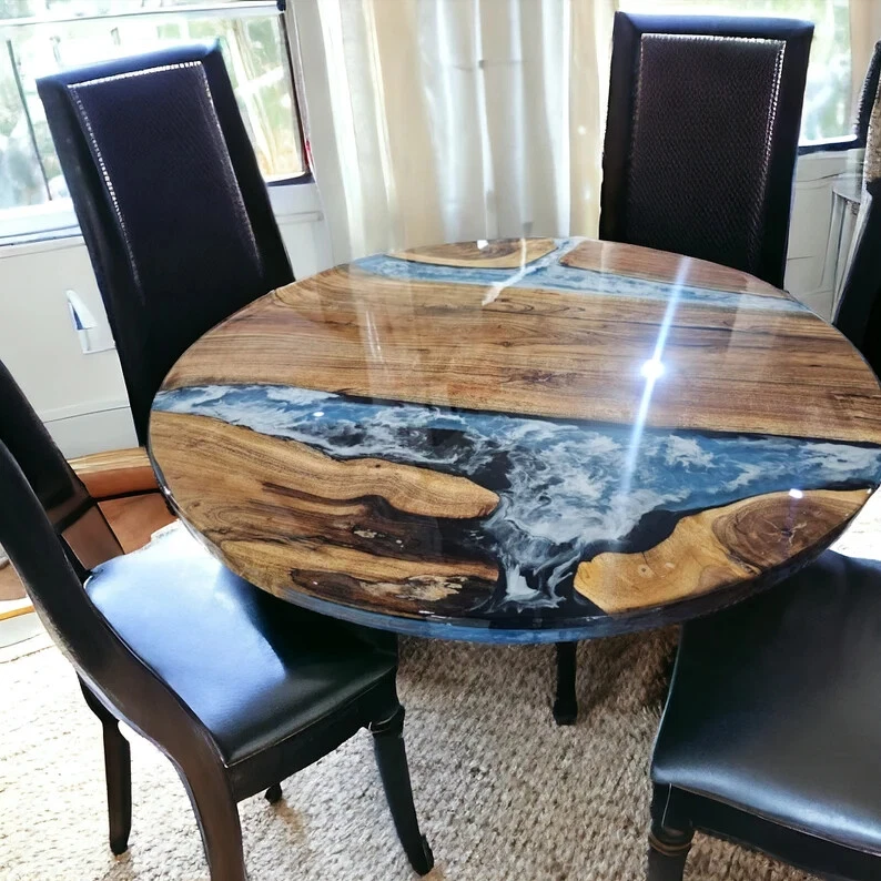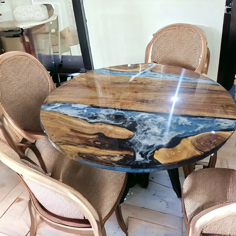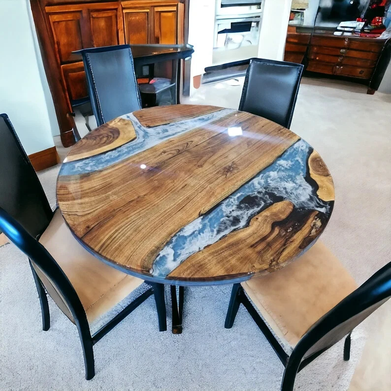 Round epoxy dining table, blue epoxy table, office center round desk furniture