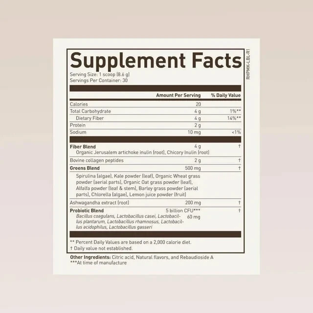 Ingredients: Ashwagandha, Collagen, Prebiotic, Probiotic Type: All-in-One Product Volume: see description Country/Region of Manufacture: Unknown gtin13: Does not apply Formulation: Powder Number of Pills: 30 Department: Unisex UPC: Does not apply Item Weight: 1 oz Flavor: strawberry lemonade Main Purpose: Anti-Aging, Digestive Support, General Wellness, Immune Support Brand: Branded Features: All Natural Expiration Date: see description Active Ingredients: Collagen, Prebiotic, Probiotic, Ashwaganda, green blends When to Take: see description Dosage: see description MPN: Does not apply