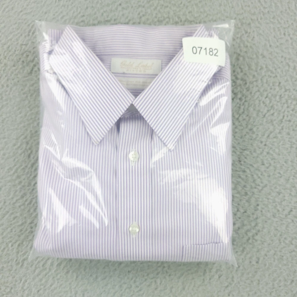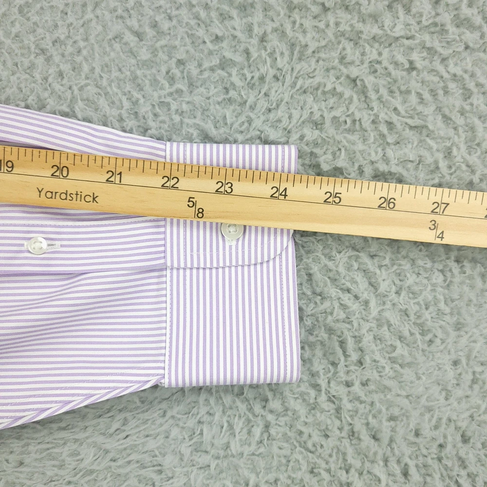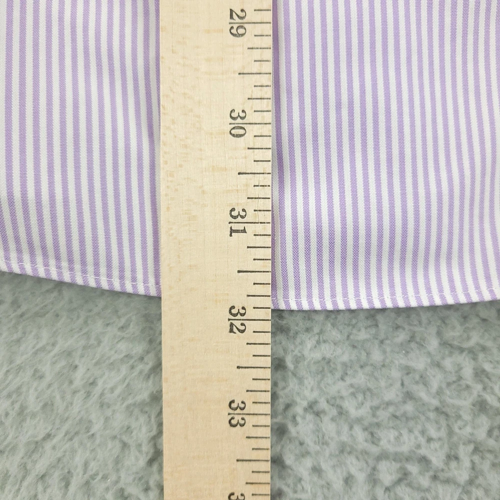 Roundtree & Yorke Gold Label Shirt Mens 17.5 35 Purple Stripe Fitted Non Iron Brand: Roundtree & Yorke Gold Label Style: Mens long sleeve fitted dress shirt with purple and white vertical stripe pattern. Color: Light purple and white stripe. Tag size: 17.5 inch neck, 35 sleeve (mens fitted). Material: 100% cotton pinpoint; non-iron EZ Wash fabric. Details: Point collar, front button closure, single chest pocket, barrel cuffs with two buttons, back box pleat, curved shirttail hem; made in China. Labels: Gold Label Roundtree & Yorke Fitted; Non-iron EZ Wash 100% Cotton Pinpoint. Measurements are included in the photos, compare measurements with your item to ensure proper fit. Items are added daily click here to Visit My Store Combined shipping for US customers is 1.99 for each additional item Items are cleaned per eBay standards & policies
