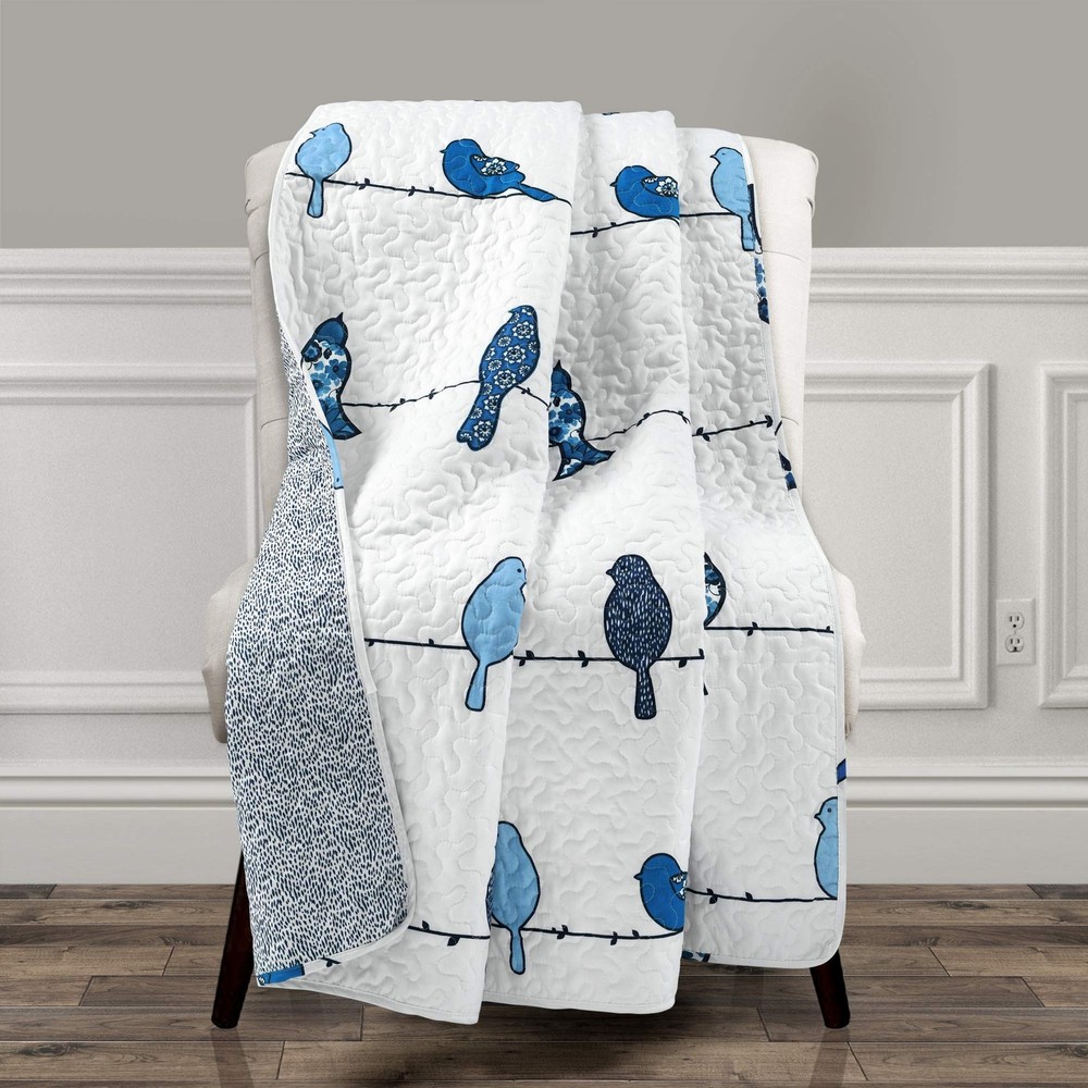 Playful Bird Throw: Celebrate your fun side with our Rowley Birds Reversible Throw Blanket. The front of this eclectic design has rows of colorful birds perched on a wire. Each bird features a whimsical floral pattern, adding playful charm to your decor. Cozy Throw: Decorate your boho, coastal or farmhouse styled home with this cozy whimsical throw blanket. It makes is a perfect layering piece for your bed, couch, or chair. Flip this soft reversible blanket over to reveal a dotted pattern for a new look. Homey Decor: This reversible throw is crafted from a soft microfiber with a cotton blend filling, and measures 50 inches wide by 60 inches long. It's the perfect size for two adults to snuggle in together or as the main blanket on your child's bed. Versatile Comfort: This versatile quilted blanket is a must-have for all your cozy moments. It also makes the perfect pet blanket! Ideal for a kitten, cat, puppy, dog, or any fun pet, this comfy blanket also fits great in a pet crate! Easy Care: Designed for effortless maintenance, it's easy to care for this throw blanket. Simply machine wash cold on a gentle cycle and tumble dry low. Use non-chlorine bleach for cleaning or an iron on low heat to release wrinkles if needed.