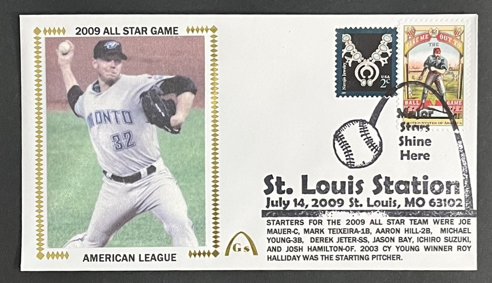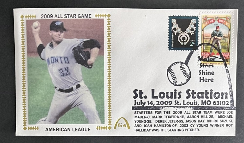 Spring Forward Week: Items are scheduled for 8pm Eastern. It is possible for the sales to end an hour later due to the time change. eBay is unpredictable. Please watch the time remaining on Sunday March 8th to know for sure. Items in the sales ending at 8:00 pm tend to be in better condition. 8:05 pm items have light imperfrections. The items ending at 8:10-8:15 pm have more noticable imperfections. -------------------------------------------------------------------- Player(s): Roy Halladay – not autographed Event: 2009 All Star Game Postmark: July 14, 2009 in St. Louis, MO Bio: Toronto Blue Jays and Philadelphia Phillies You are bidding on an unautographed Gateway Stamp Cachet commemorative envelope for the 2009 All-Star Game. This limited edition, collectable & philatelic envelope cannot be reproduced beyond the original inventory of postmarks. -------------------------------------------------------------------------------- The condition of items in this store can vary greatly. Please double-check the provided images for imperfections before placing substantial bids. Only less-common blemishes or those difficult to see in the photos may be noted in the “Item specifics” section. Please double check all images provided to ensure you are comfortable with the product. Questions are always welcome! SHIPPING: Includes bubble protected envelope, hand- cut styro-board protection, and plastic top-loader for even more protection. Standard Shipping & Handling is $4.99 to the United States. Combined shipping for multiple items at no charge. All scheduled auctions in this store end on Sunday evenings. Each 5-minute interval will contain several auctions (usually 6-12 items). Mistakes in auction scheduling do occur from time to time, but the expected scheduling of items will be from 8:00 until 8:10 PM (Eastern Time). Note: Many of the items that we offer on eBay have a starting price of around 90% OFF the retail price.