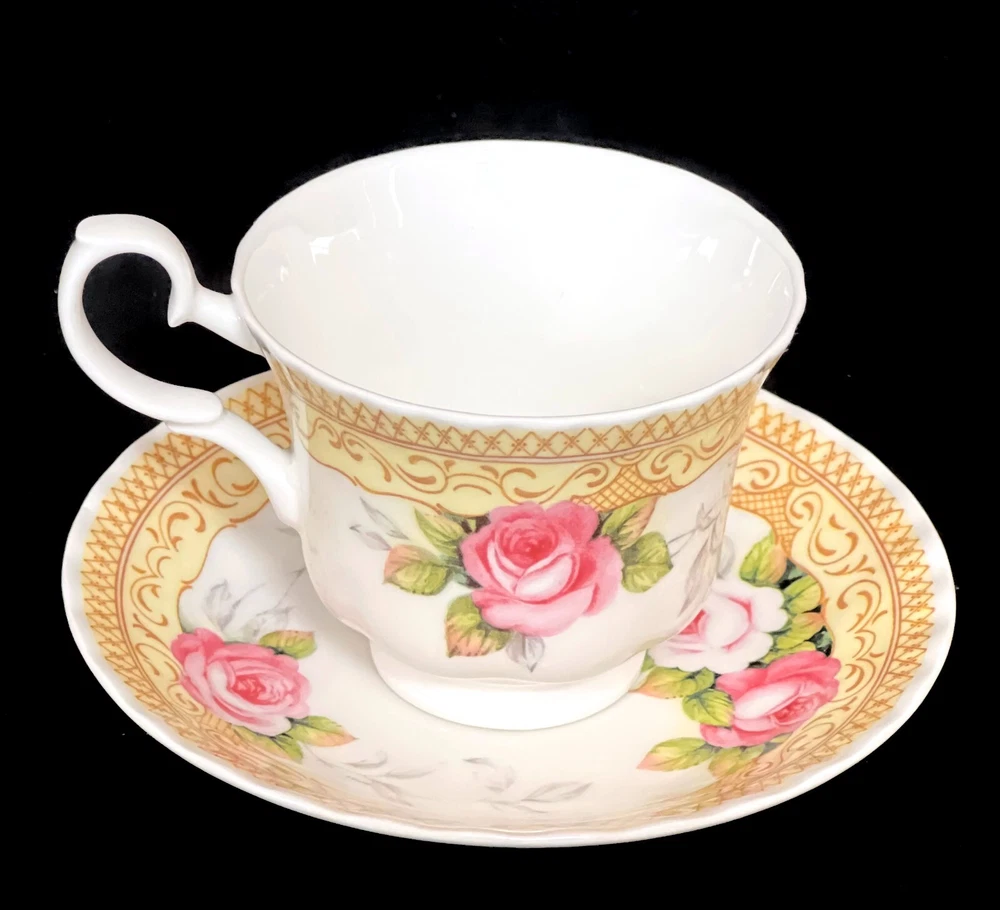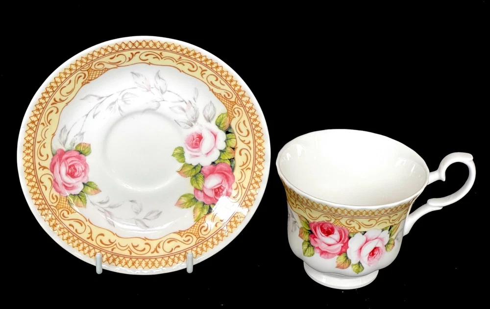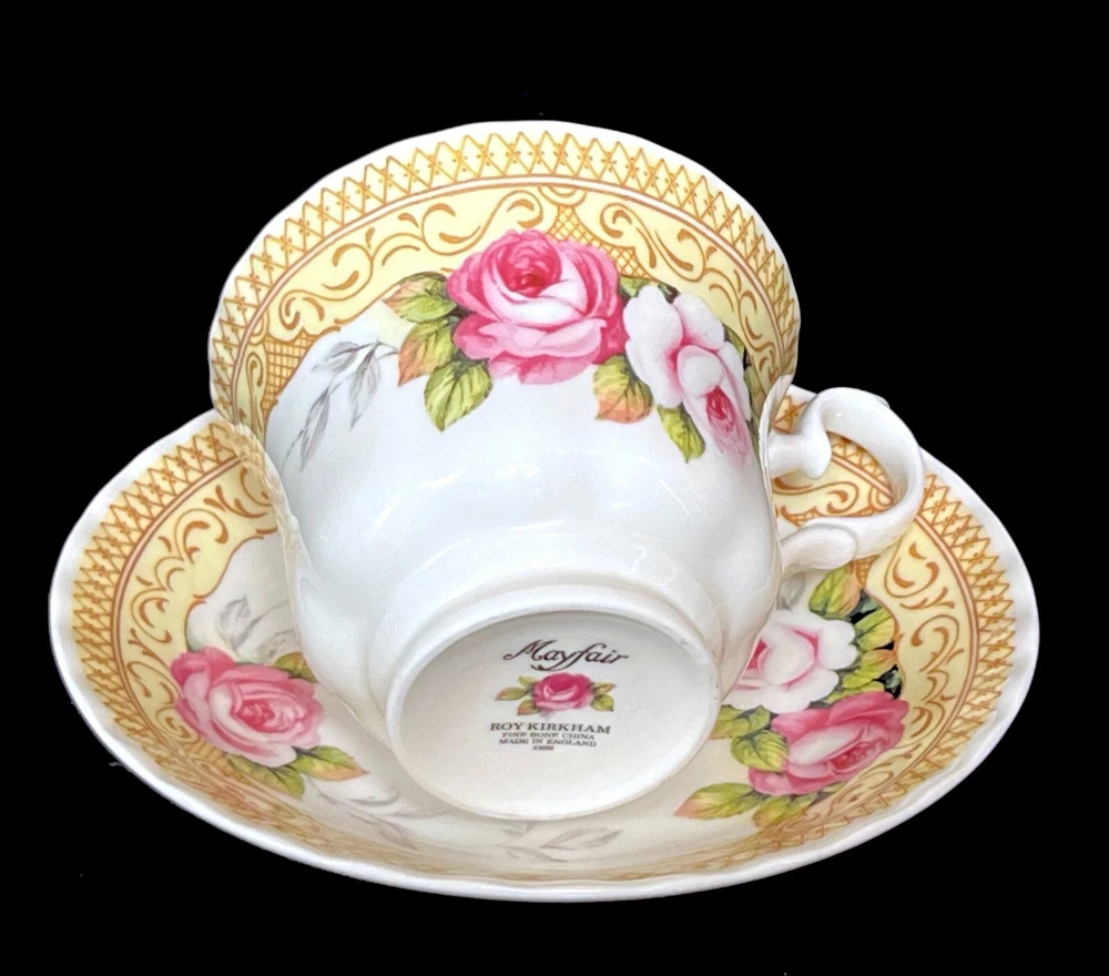 Add a touch of elegance to your morning routine with this set of Teacup & Saucer. Made of fine bone china and designed by Roy Kirkham, this cup features a beautiful floral pattern from "Mayfair" collection. The cup is suitable for both hot and cold beverages. This original cup was manufactured in the United Kingdom in 2000 and is perfect for collectors or for daily use. Each cup has a unique multicolor design and is made of high-quality materials. Start your day off right with this beautiful cup that is sure to impress. This cup is part of a huge collection of Roy Kirkham fine bone china items including mugs, jumbo breakfast cups with saucers, footed cups with saucers, salad plates and more. _______________________________________________ Price of the item does not include shipping fees. Buyer is responsible for all shipping costs. Please review the listing photos and description carefully. Due to lighting, actual colors may vary slightly from pictures. Items are always carefully and securely packed in a box. The description of items is as accurate as possible. However, if there is a problem with the item you receive, please contact me prior to leaving your feedback and I will be happy to resolve the issue to our mutual satisfaction.