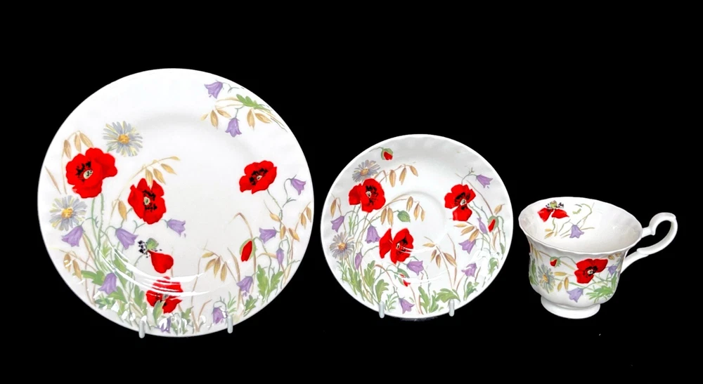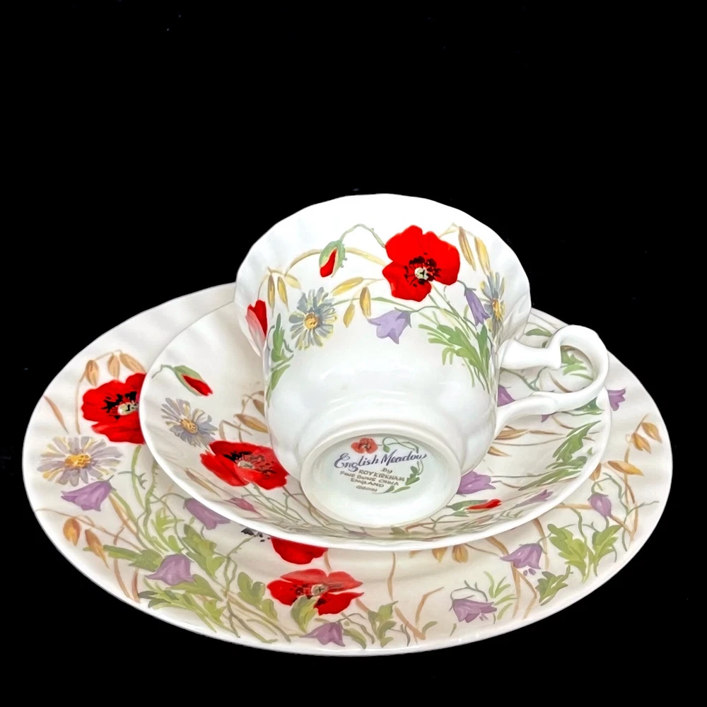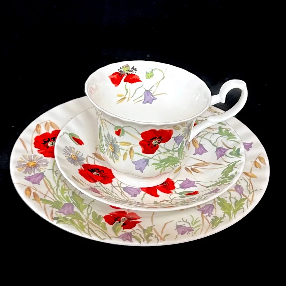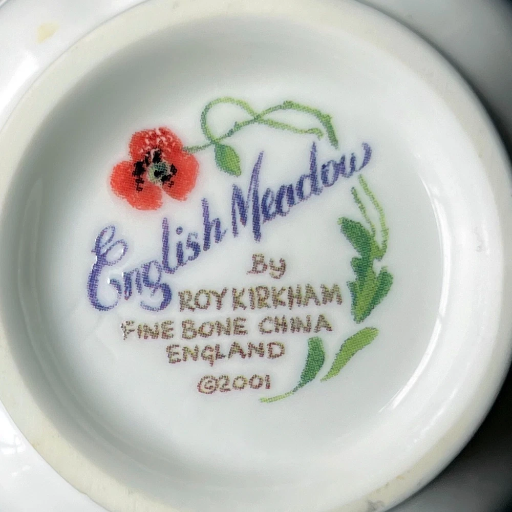 Add a touch of elegance to your morning routine with this set of Teacup, Saucer & Dessert Plate. Made of fine bone china and designed by Roy Kirkham, this cup features a beautiful floral pattern from "English Meadow" collection. The cup is suitable for both hot and cold beverages. This original cup was manufactured in the United Kingdom in 2002 and is perfect for collectors or for daily use. Each cup has a unique multicolor design and is made of high-quality materials. Start your day off right with this beautiful cup that is sure to impress. This cup is part of a huge collection of Roy Kirkham fine bone china items including mugs, jumbo breakfast cups with saucers, footed cups with saucers, salad plates and more. _______________________________________________ Price of the item does not include shipping fees. Buyer is responsible for all shipping costs. Please review the listing photos and description carefully. Due to lighting, actual colors may vary slightly from pictures. Items are always carefully and securely packed in a box. The description of items is as accurate as possible. However, if there is a problem with the item you receive, please contact me prior to leaving your feedback and I will be happy to resolve the issue to our mutual satisfaction.