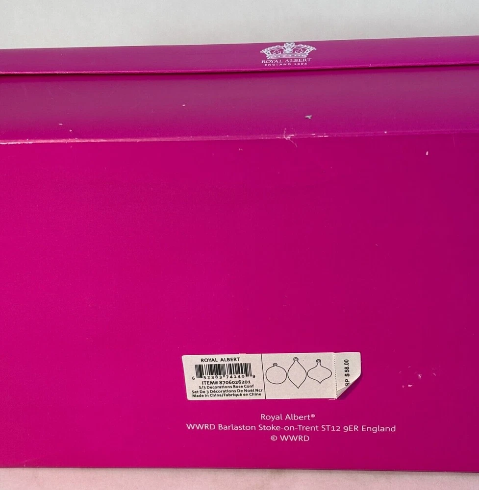 Royal Albert Christmas Ornaments Set of 3 652383741409 Bone China England Boxed Thank you for shopping with me. Please see photos for exact details of the item and please feel free to contact me for more information or for additional measurements. Very quick shipping, same day or next day. Liz at Blackberry Morning Resellers