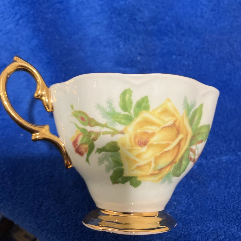 Royal Albert yellow rose pattern tea cup and saucer. No chips cracks or crazing in the glaze. Gold glaze around edge of cup and saucer as well as the handle. Set in very good condition. Combine shipping when purchasing multiple cups and saucers.