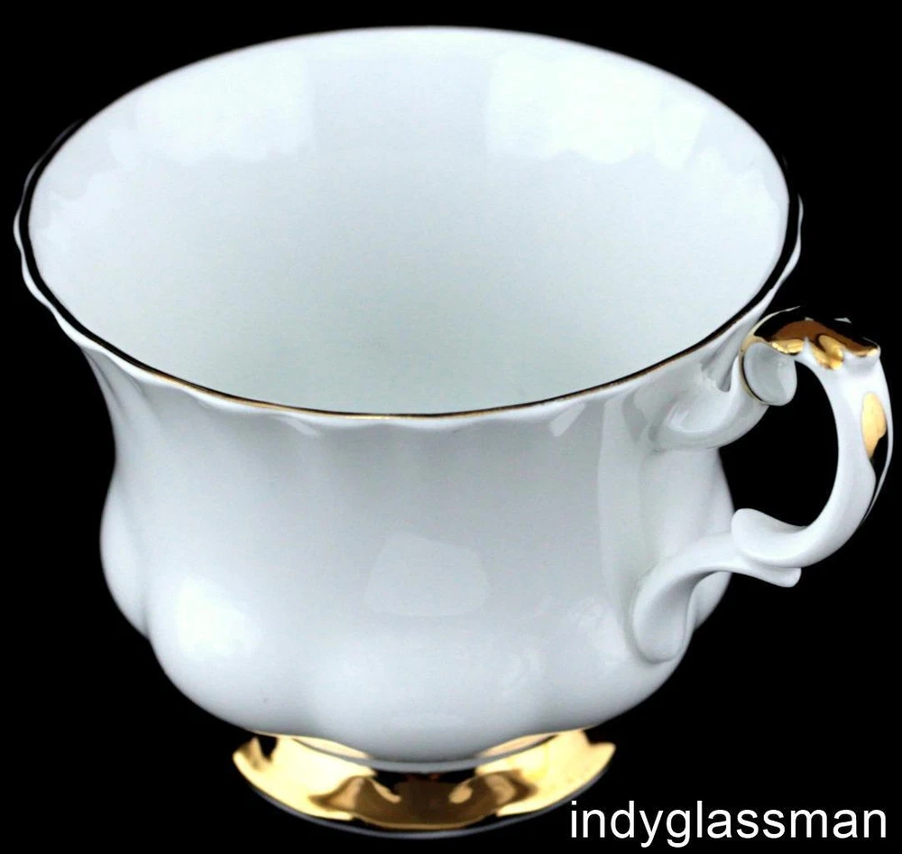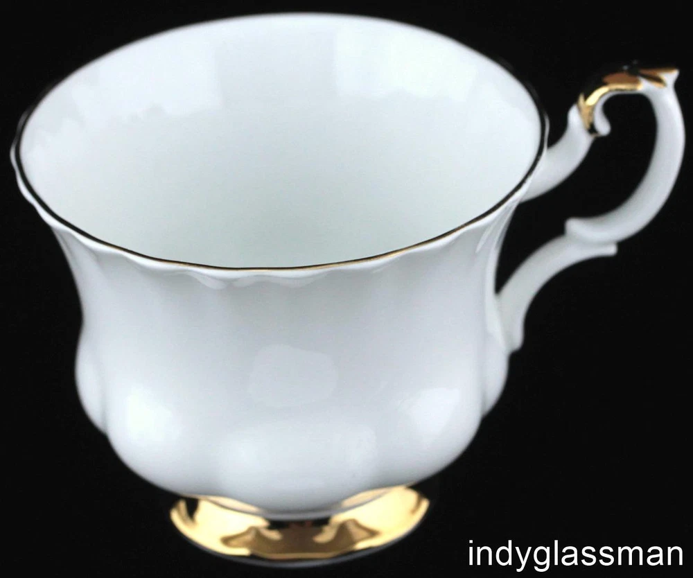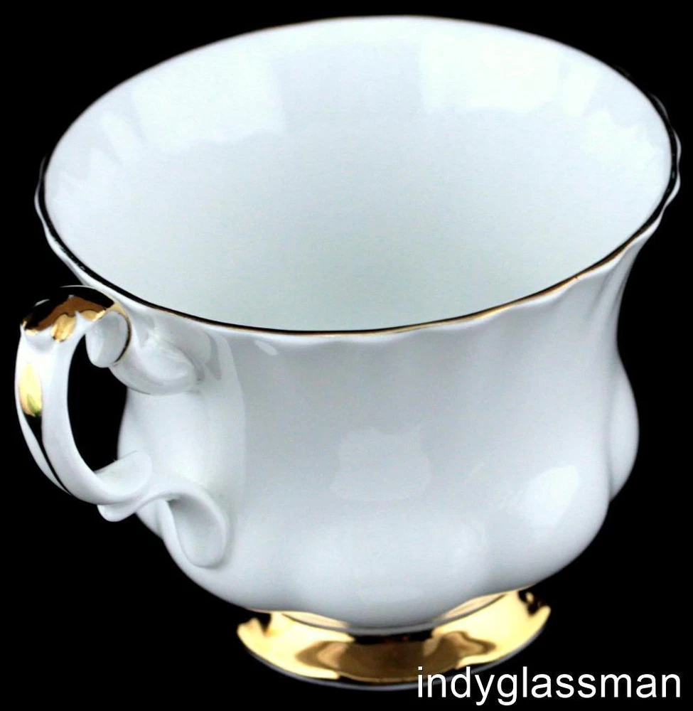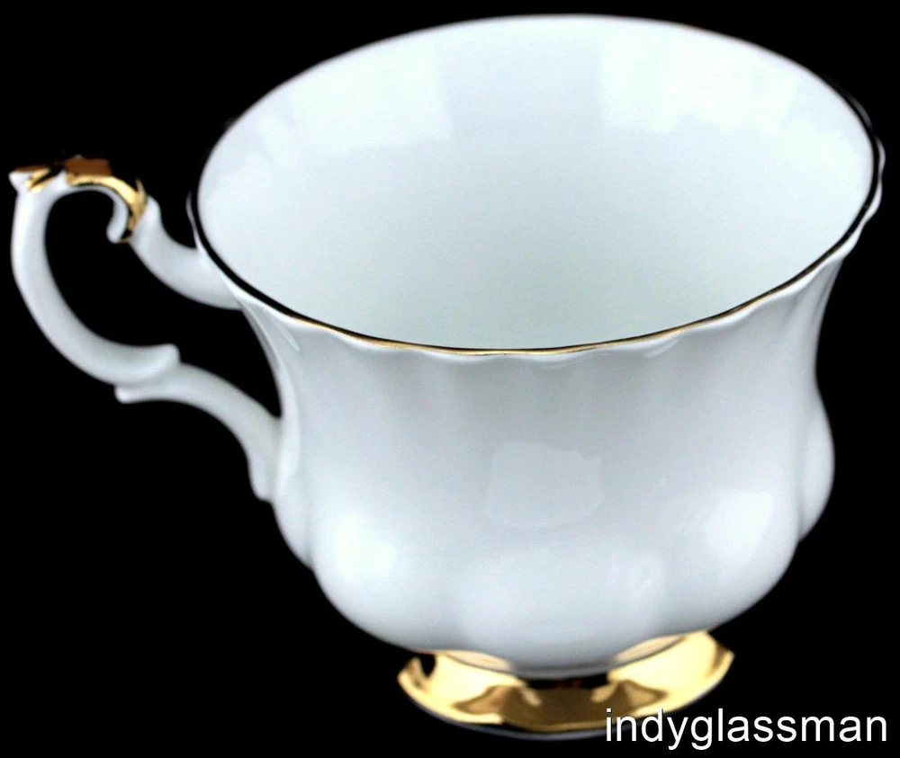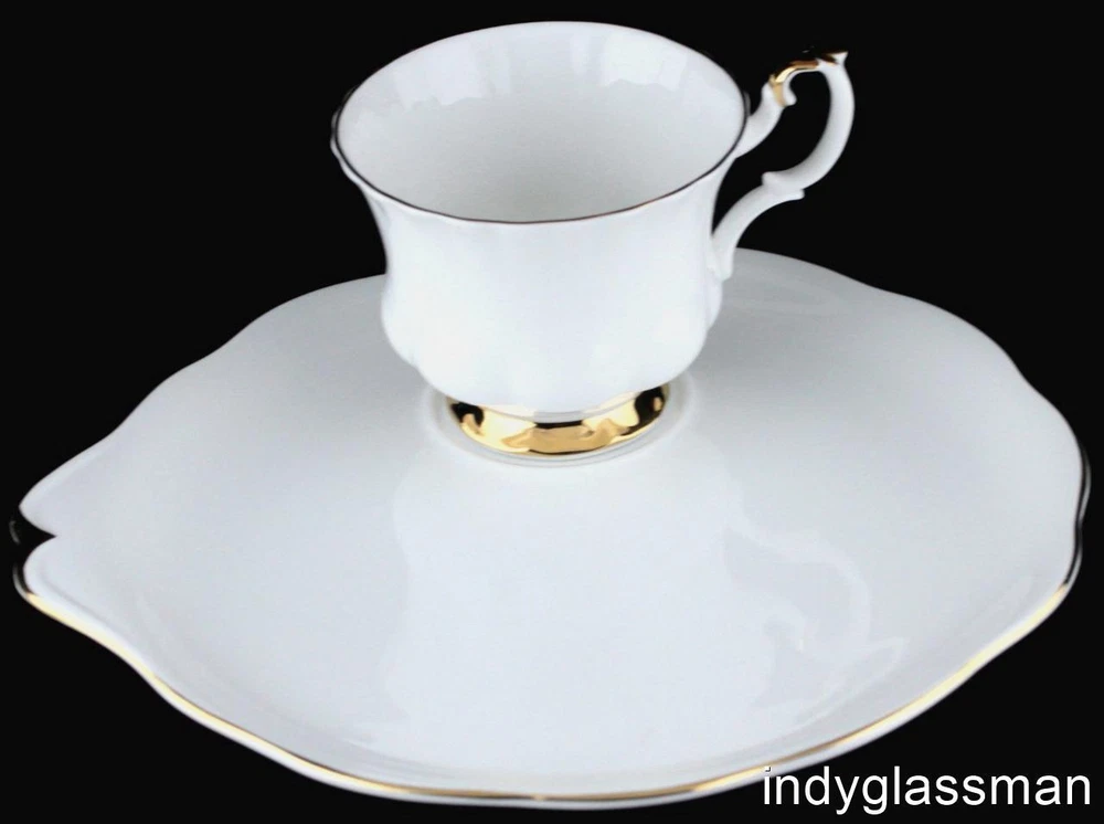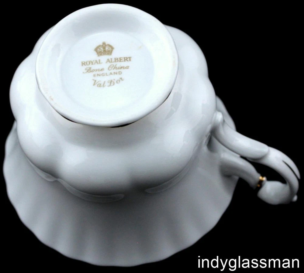Every set offered is in excellent damage-free condition with minimal signs of use. They have seen very little use and have been well cared for. They are very clean and shiny, top and bottom, without crazing, chips, cracks, dark utensil marks, gold loss, or dishwasher film, and the base bottoms show no signs of use. Every set offered has been closely inspected and the only thing noted were a few superficial (clear) marks consistent with minimal use and/or storage. The are clear and do not detract from their use or display value. Please see all of the super-sized photos below for the best visual description of these wonderful sets. The cup measures approx. 2 3/4" tall and 3 3/8" across. The dessert plate measures 8 5/8" x 8 1/4". Royal Albert VAL D'OR Snack Plate & Cup Set Royal Albert VAL D'OR Snack Plate & Cup Set Click image to enlarge Description Things you should know about Place Settings Plus Welcome! There are all kinds of people selling on eBay. Our goal is to be the one you can trust and depend on for high quality items at the best possible prices. Each item is thoroughly cleaned and inspected before listing. Each item is in "gently used" to "near mint" condition unless stated otherwise. Each item is described in detail and any relevant imperfection disclosed. All photos shown are of the actual item you will receive. (No stock photos) Each item is double checked for quality and condition prior to shipment. Each item is professionally packaged for a safer journey to your door. We always combine multiple items to save you on shipping charges. We do not profit on shipping charges . You will only pay the actual shipping charge and $1.00 for S&H. Most orders ship within 1 business day after payment is received. That's it! Please review my latest feedback and buy with confidence! ITEM DESCRIPTION Place Settings Plus is pleased to offer (1) Royal Albert (England), Bone China, Snack Plate & Cup Set in the all white "Val D'Or" pattern. Ca. 1960-2009. Every set offered is in excellent damage-free condition with minimal signs of use. They have seen very little use and have been well cared for. They are very clean and shiny, top and bottom, without crazing, chips, cracks, dark utensil marks, gold loss, or dishwasher film, and the base bottoms show no signs of use. Every set offered has been closely inspected and the only thing noted were a few superficial (clear) marks consistent with minimal use and/or storage. The are clear and do not detract from their use or display value. Please see all of the super-sized photos below for the best visual description of these wonderful sets. The cup measures approx. 2 3/4" tall and 3 3/8" across. The dessert plate measures 8 5/8" x 8 1/4". The set weighs approx. 1 lb. Please check out my other listings and save with combined shipping. Due to a few dishonest people, all items will be shipped with security labels to prevent fraudulent returns. No returns will be accepted without the security label or if it has been tampered with. The label easily washes off with warm soapy water or a lcohol. Images sell! Get Supersized Images & Free Image Hosting Create your brand with Auctiva's Customizable Templates. Attention Sellers - Get Templates Image Hosting, Scheduling at Auctiva.com. Track Page Views With Auctiva's Counter