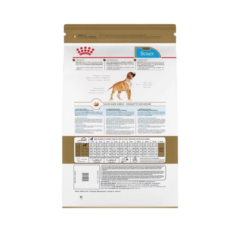 Dry dog food designed to meet the nutritional needs of purebred Boxers 8 weeks to 15 months old. Specialized kibble helps Boxers easily pick up and chew their food. Helps protect puppy development of the immune system and natural defenses with an exclusive complex of antioxidants including vitamin E. Provides developing muscle support and weight management with precise protein content and L-carnitine. Supports healthy digestion and intestinal health with high-quality proteins and prebiotics, which also help promote optimal stool quality..