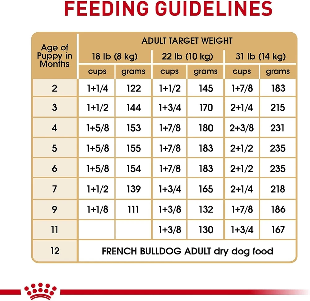 Serve up the tailored nutrition your French Bulldog deserves with Royal Canin Breed Health Nutrition French Bulldog Puppy Dog Food Dry Formula. Royal Canin makes it easier than ever to feed your puppy tailored dog food. This French Bulldog food features a customized curved-shaped kibble that is specially designed for your French Bulldog's short muzzle and jaw shape, making it easy for little dogs to pick up and chew. Not only that, but this complete and balanced puppy food provides the nutrition to help your best friend thrive. An exclusive mix of antioxidants and vitamin E in the dog kibble promotes healthy development of your puppy's immune system, while exclusive nutrients help support the skin barrier for healthy skin. Royal Canin French Bulldog food is formulated with high-quality protein and prebiotics to support digestive health and a balanced intestinal flora, contributing to optimal stool quality. Serve your French Bulldog Royal Canin Dog Food and promote your puppy's overall wellness with every meal. TAILORED NUTRITION: Check out the full range of Royal Canin wet and dry puppy food formulas that offer precise nutrition for dogs of all ages, sizes and breeds QUALITY AND SAFETY: Attention to the very smallest details helps Royal Canin deliver precise and effective health nutrition for pets MIXED FEEDING: Pairs well with Royal Canin Size Health Medium Puppy Thin Slices in Gravy Wet Dog Food DIGESTIVE HEALTH DOG FOOD: Healthy dog food helps to support a balanced intestinal flora and healthy digestion, contributing to optimal stool quality SKIN HEALTH: Exclusive nutrients help support the skin barrier for healthy skin IMMUNE SUPPORT PUPPY FOOD: Antioxidants and vitamin E in the dry dog food promote healthy development of your puppy's immune system CRUNCHY KIBBLE: Customized curved dog kibble shape specially designed for your French Bulldog puppy's short muzzle and jaw shape BREED HEALTH NUTRITION PUPPY DOG FOOD: Royal Canin Breed Health Nutrition French Bulldog Puppy Dog Food Dry Formula for purebred French Bulldogs 8 weeks to 12 months old Product Dimensions 3.5 x 13.5 x 23.5 inches; 10.5 Pounds Manufacturer recommended age 1 month and up Item model number 111109 Manufacturer Royal Canin Brand Royal Canin Flavor Chicken Age Range (Description) Puppy Item Form Kibble Specific Uses For Product Muscle Care Item Weight 10.5 pounds Manufacturer Royal Canin Item model number 111109 Item Dimensions LxWxH 3.5 x 13.5 x 23.5 inches Brand Name Royal Canin Target Audience Keyword French Bull dog Puppy Directions Royal Canin French Bulldog Puppy dry dog food is designed to meet the nutritional needs of purebred French Bulldogs 8 weeks to 12 months old Size 10.5 Pound (Pack of 1) Age Range Description Puppy Number of Items 1 Style Puppy Breed Recommendation Medium Breeds Specific Uses for Product Muscle Care Item Package Dimensions L x W x H 22.5 x 12.5 x 3.4 inches 8161174