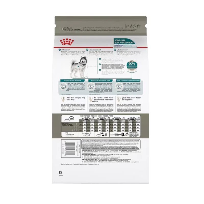 Formulated for large adult dogs 15 months and older weighing 56-100 lb to support healthy joints. Joint support diet promotes bone and joint health with advanced nutrients like collagen. Supports healthy weight management with adapted calorie content. To please picky eaters, mix with Royal Canin Joint Care Wet Dog Food. In combination with regular exercise, this formula provides joint and bone support for large breeds..