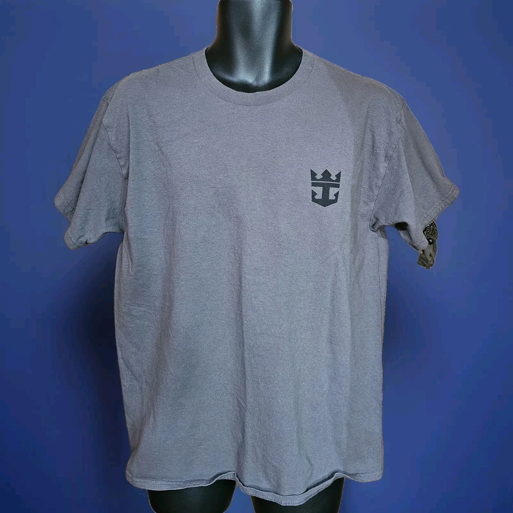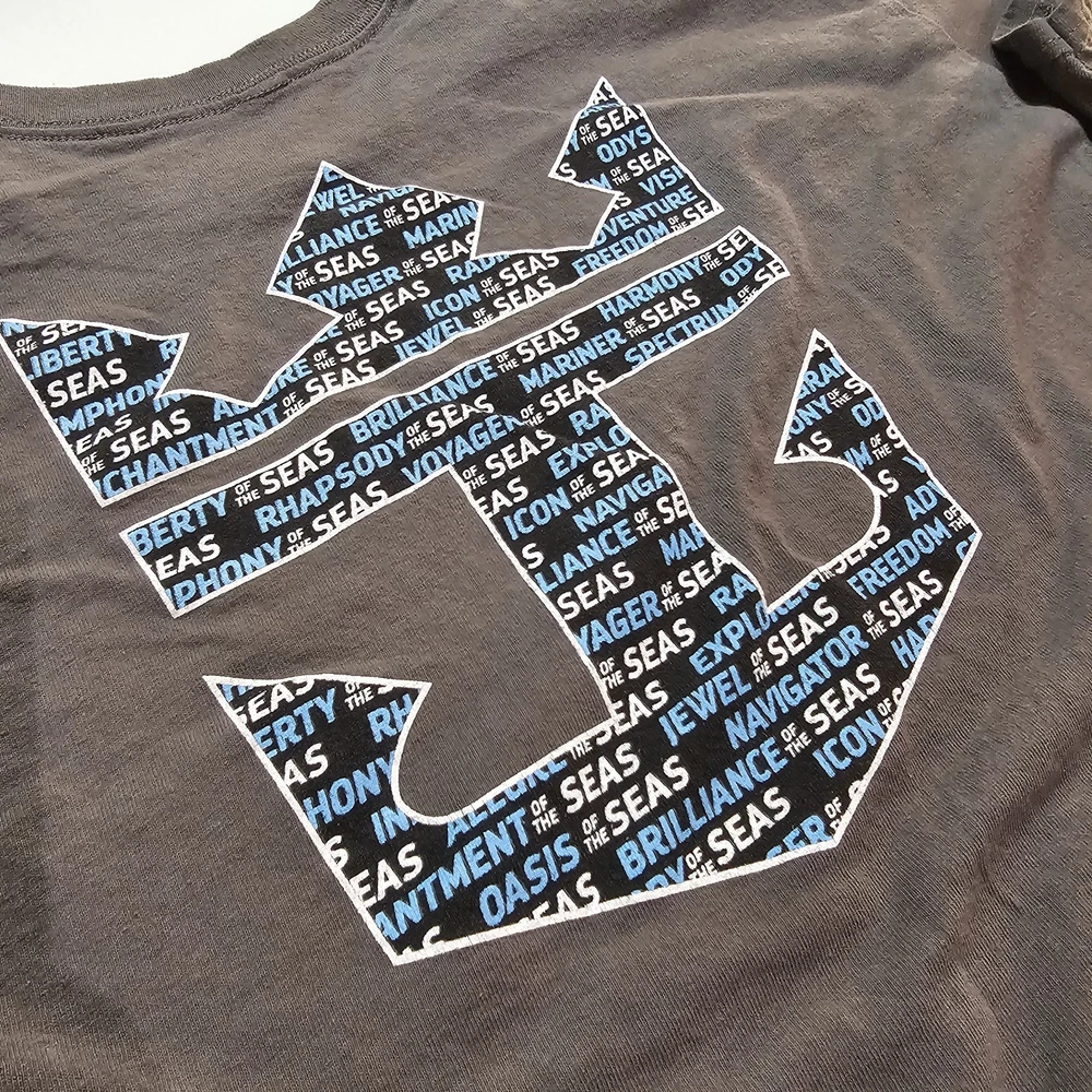 Royal Caribbean International Anchor Gray Mens Large Tshirt Ships Names Chest-20.25" across pit to pit Length-27.5"