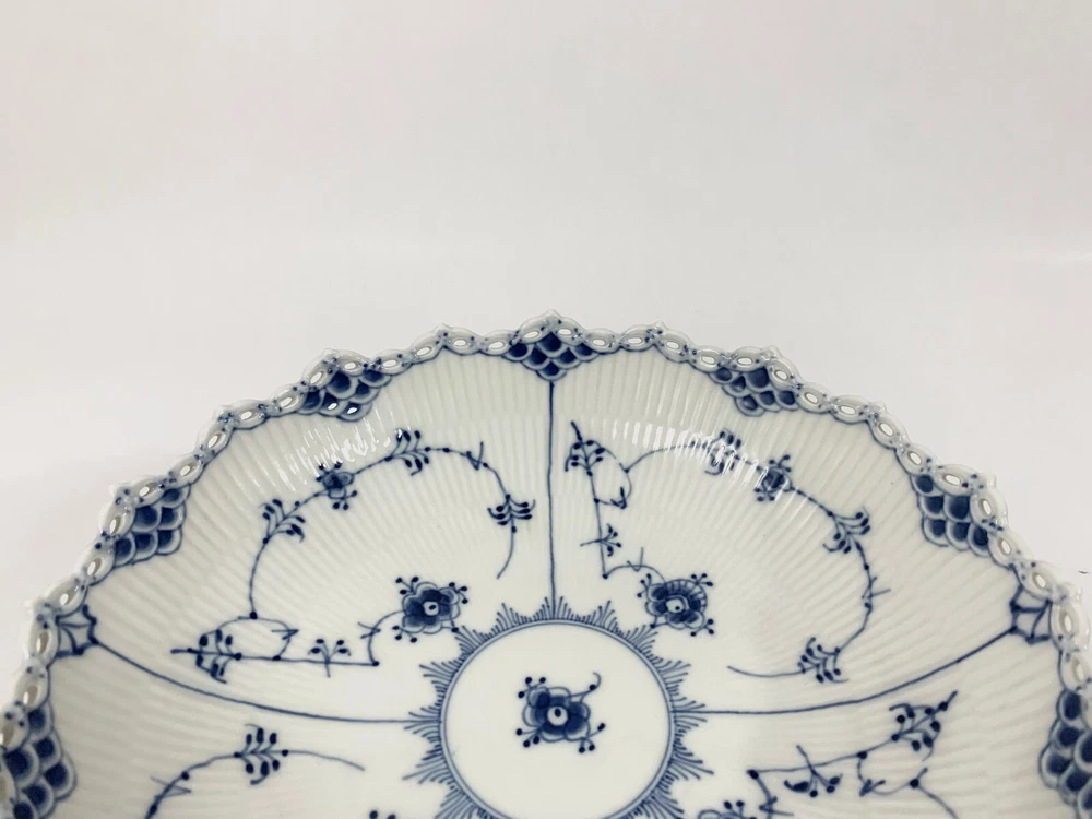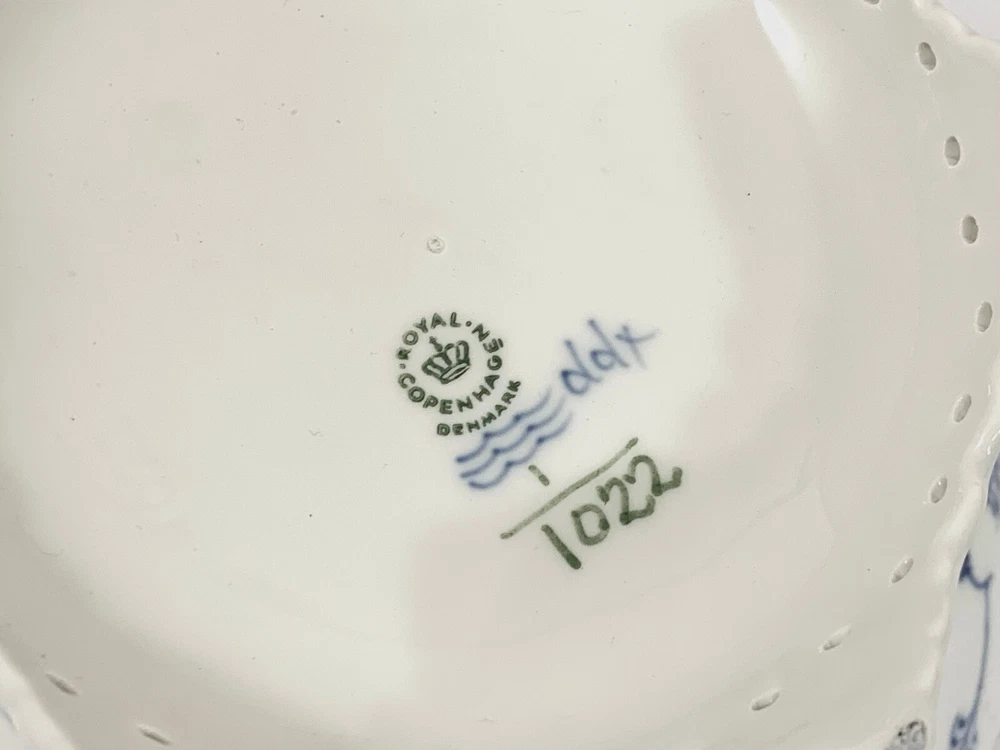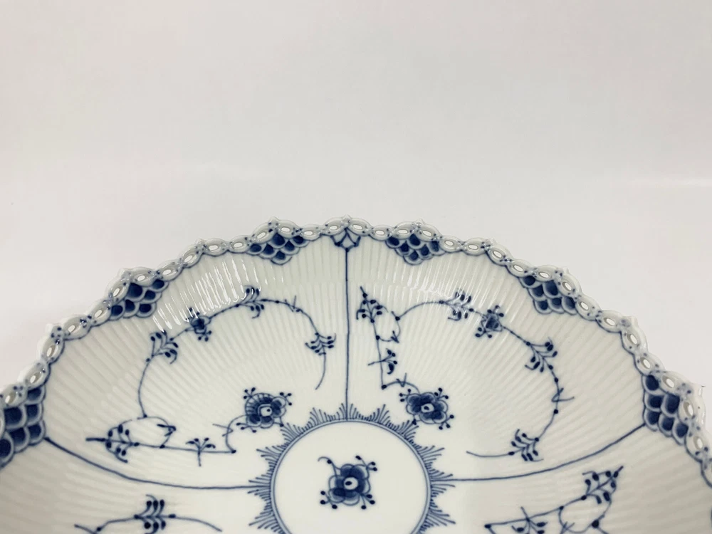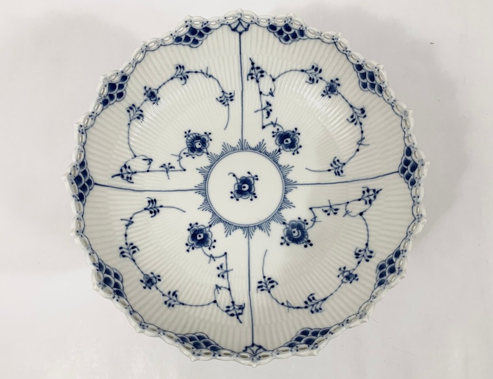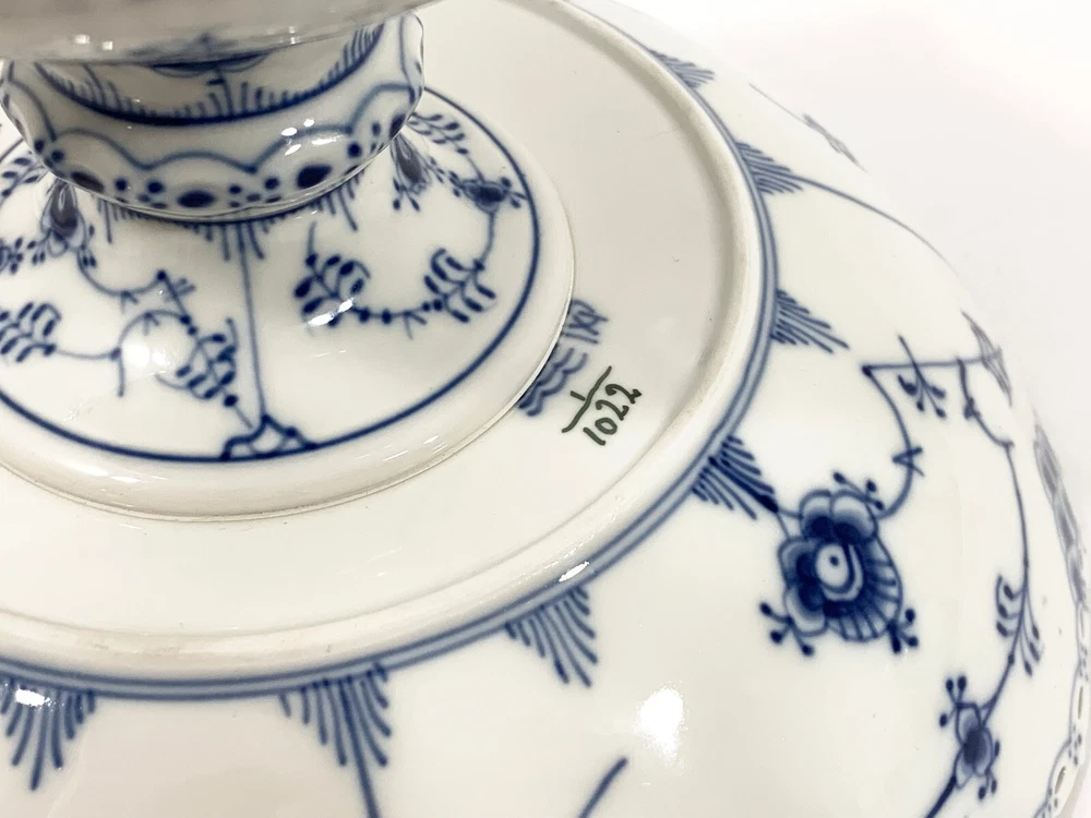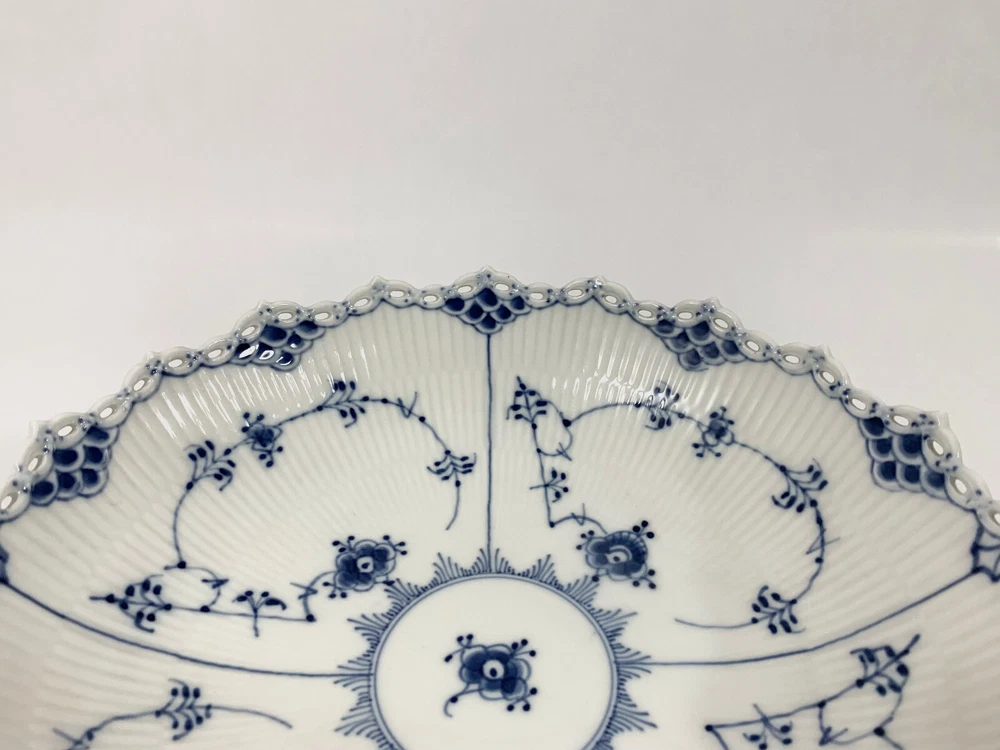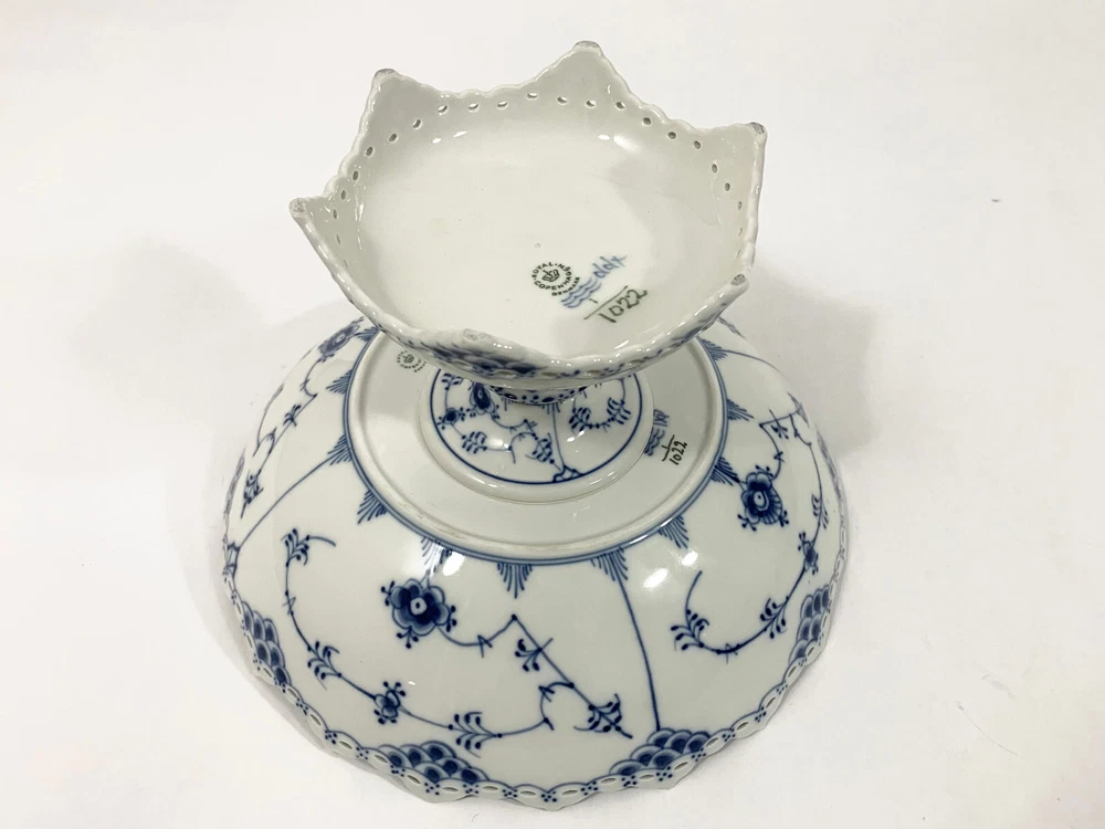 Royal Copenhagen Blue Fluted Full Lace 1022 Cake Stand Bowl Condition: Small stain to the side of the bowl Bowl Height: 17,5 cm Diameter: 28 cm The pictures taken is the same one that you will receive. Shipping! I also combine shipping. Please contact me if you have any other questions.