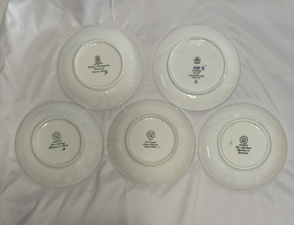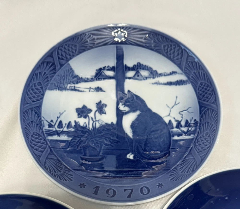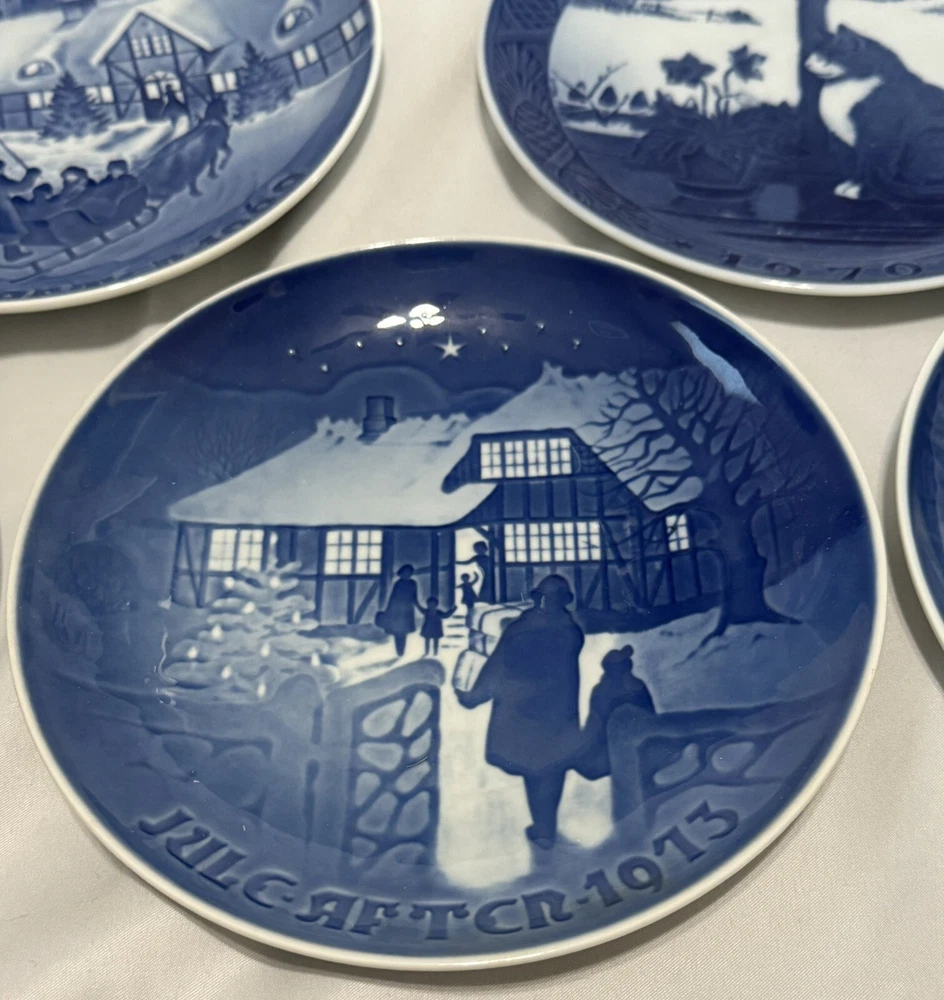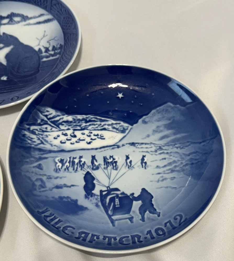 Royal Copenhagen Set / B&G Christmas Winter Collector Plates 7” 1969-1973 Blue