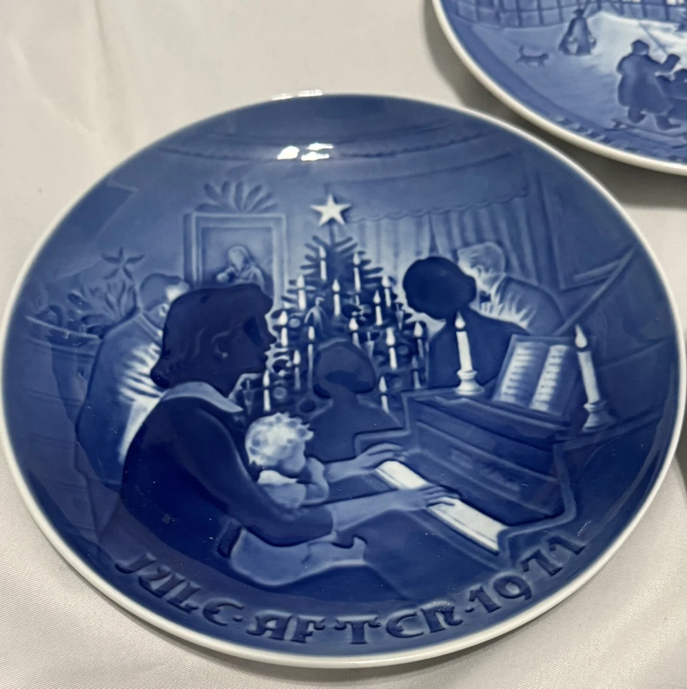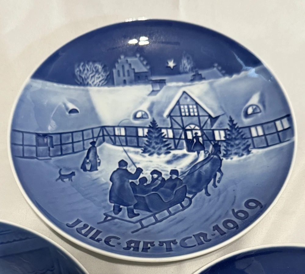 gtin13: Does not apply Product Line: Royal Copenhagen Vintage: Yes Type: Collector Plate Origin: Denmark Style: Renaissance Theme: Christmas Franchise: Royal Copenhagen Character: Multiple Brand: Royal Copenhagen Production Style: Flow Blue Antique: No Shape: Round Material: Ceramic, Porcelain Item Diameter: 7 in Production Technique: Collection Time Period Manufactured: 1969, 1970, 1971, 1972, 1973 Occasion: Christmas Country/Region of Manufacture: Denmark Culture: Danish Pattern: Christmas Scenes UPC: Does not apply Color: Blue Features: Embossed