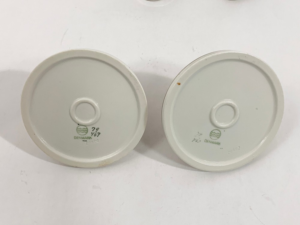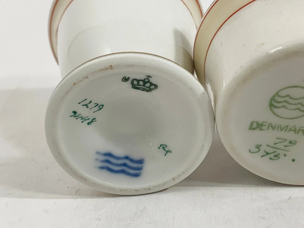 6x Royal Copenhagen The Spanish Pattern 469 Candle Holders , 215 Salt and 264 Pepper Shakers 2438 Egg Cup and 374 Small Bowl Lot Condition: Item show different signs of ware. 1279 Egg cup, Produced 1923 469 Candle Holders Height: 5,5,5 Diameter: 11,5 cm 264 Pepper Shaker Height: 8 cm Diameter: 5,5 cm 215 Salt Shaker Height: 7 cm Diameter: 4,5 cm 1279 Egg cup, Produced 1923 Height: 6 cm Diameter: 5 cm 345, Small bowl Height: 3 cm Diameter: 5,5 cm The pictures taken is the same one that you will receive. Shipping! I also combine shipping. Please contact me if you have any other questions.