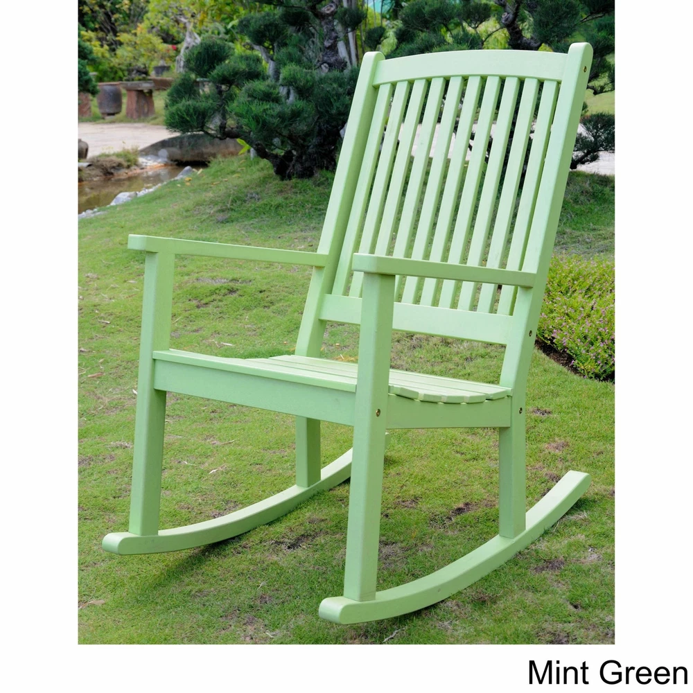 Long lasting acacia wood construction highlights this stylish rocking chair, which is available in three lovely colors. The traditional high-back rocking chair style is designfor the utmost comfort.Enjoy chatting with neighbors and passersby when you decorate your front porch with this durable rocking chair, which is designed to resist the effects of weather and sun for long-lasting enjoyment. This chair also is appropriate for use inside, where its vibrant finish complements a variety of floor coverings and wall colors.Built with durable, long-lasting, and sustainable acacia hardwoodAvailable in your choice of three beautiful, colorful wood stainsDesigned with a traditional high back rocking chair styleSet includes: One (1) rocking chairAvailable colors: Barn red, mint green, sky blue Free Shipping Over $49.99* Details Royal Fiji Porch Rocker Product Description: Long lasting acacia wood construction highlights this stylish rocking chair, which is available in three lovely colors. The traditional high-back rocking chair style is designfor the utmost comfort. Enjoy chatting with neighbors and passersby when you decorate your front porch with this durable rocking chair, which is designed to resist the effects of weather and sun for long-lasting enjoyment. This chair also is appropriate for use inside, where its vibrant finish complements a variety of floor coverings and wall colors. Built with durable, long-lasting, and sustainable acacia hardwood Available in your choice of three beautiful, colorful wood stains Designed with a traditional high back rocking chair style Set includesOne (1) rocking chair Available colorsBarn red, mint green, sky blue wood stains MaterialsAcacia hardwood FinishColored natural wood stain Weather-resistantYes UV protectionYes Weight capacity275 pounds Dimensions23 inches wide x 34 inches deep x 39 inches high Weight43 pounds Assembly required