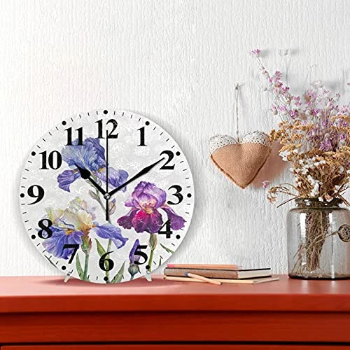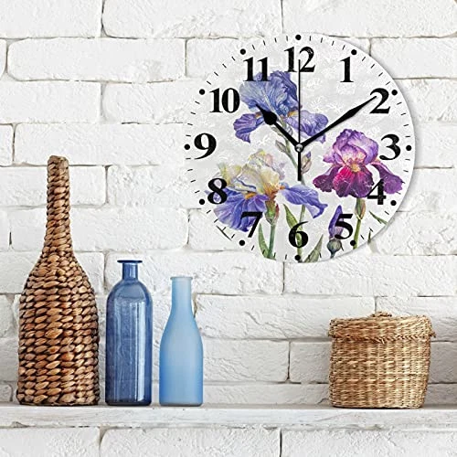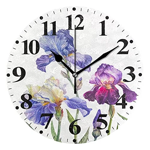 Royal Iris Flowers Printed Round Wall Clock 9.8 Inch Battery Operated Decor