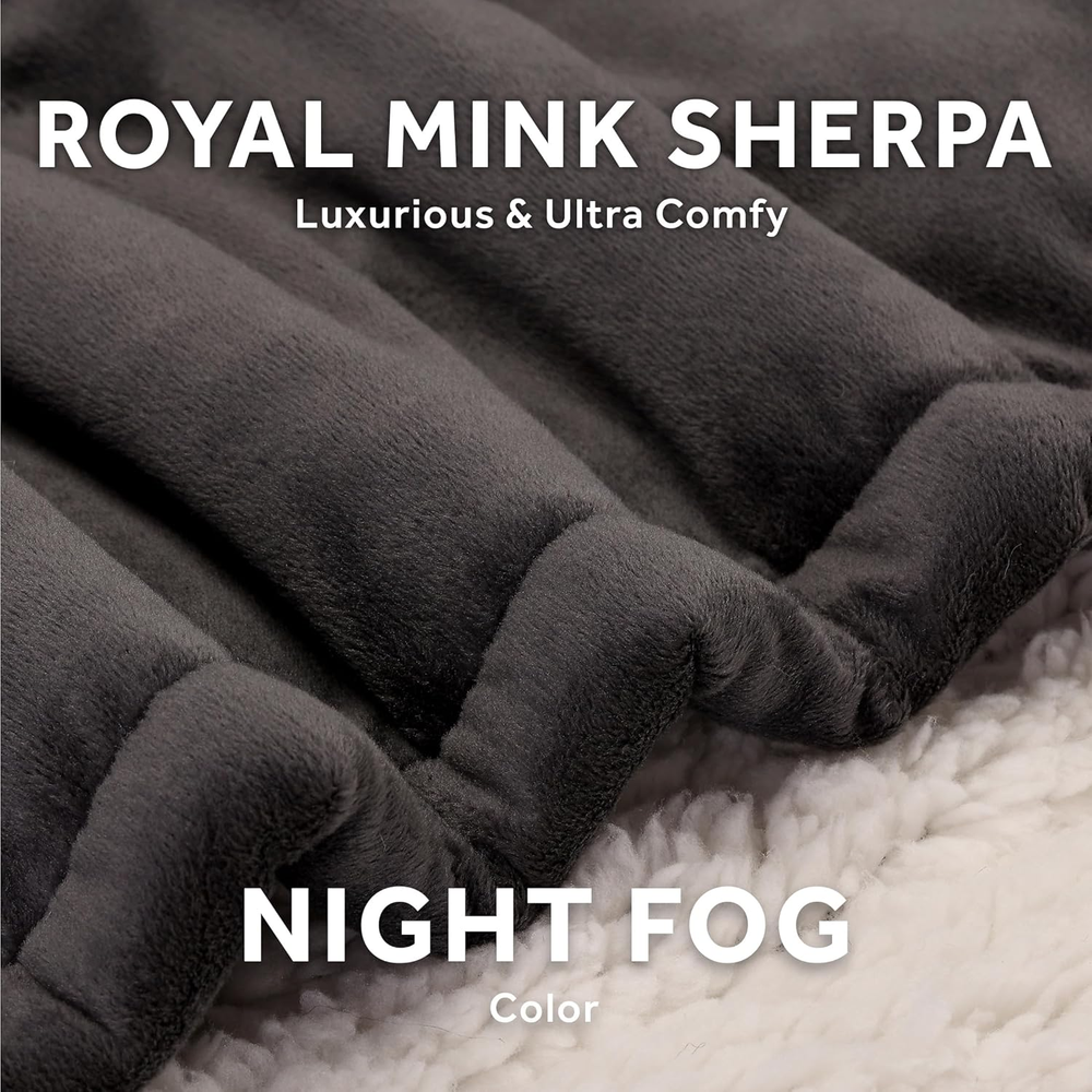 Royal Mink Sherpa Heated Throw Blanket Adjustable Cozy Warm Night Fog