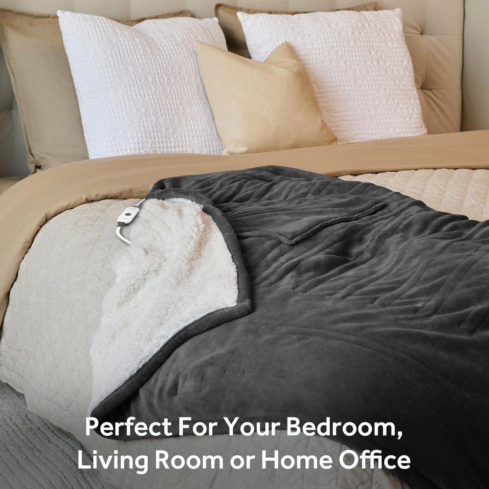 1. This heated throw is a game-changer for chilly days! The royal mink and sherpa sides are incredibly soft, and the four heat settings let me find the perfect warmth. I love the auto-shutoff feature for safety and how easy it is to toss in the wash. The dark grey color looks elegant, and the size is just right for curling up on the couch. It heats up fast and stays cozy without being bulky—perfect for movie nights or reading in bed. Definitely my new favorite way to stay warm!