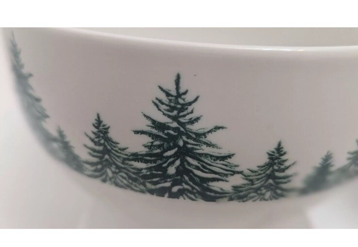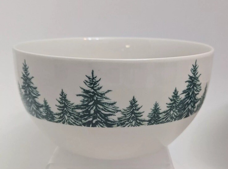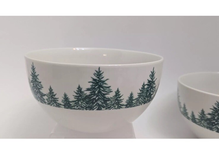 The Royal Norfolk Christmas/Holiday 5 1/2" Evergreen Seasonal Cereal/Soup Bowl set includes two pieces of round, contemporary-style ceramic bowls with a Christmas Tree pattern in green. Manufactured in 2024, these glossy finish bowls are part of a Christmas-themed collection perfect for the holiday season. Designed for serving soup or cereal, these decorative bowls feature a printed backstamp and are produced using pottery techniques in China. Ideal for adding a festive touch to your table setting, these bowls are a charming addition to your dining experience.