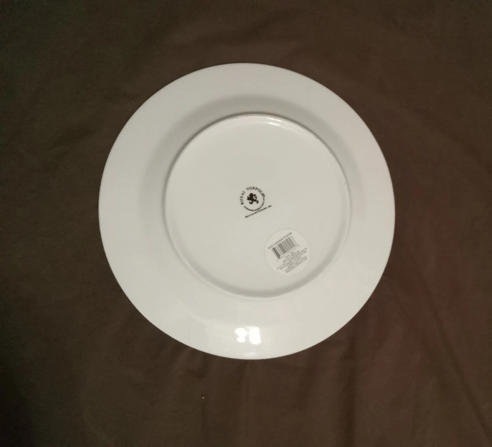 Number of Items in Set: 1 Product Line: Century Color: White Set Includes: Dinner Plate Manufacturer Warranty: 0 Features: Dishwasher Safe, Microwave Safe Production Technique: n/a gtin13: Does not apply Department: Adult Finish: Glossy Production Style: unsure Care Instructions: Machine Washable up to 140°F Style: Mid-Century Modern Pattern: Solid Seller Notes: “excellent condition. like new” Origin: Unknown Original/Licensed Reproduction: Original Diameter: 10-1/2 in Brand: Royal Norfolk Theme: none Handmade: No Shape: Round MPN: n/a Country/Region of Manufacture: Unknown Material: Porcelain Antique: No Plate Diameter: 10.5in Model: Assiette UPC: Does not apply Backstamp: Printed Occasion: All Occasions Type: Chop Plate Vintage: No