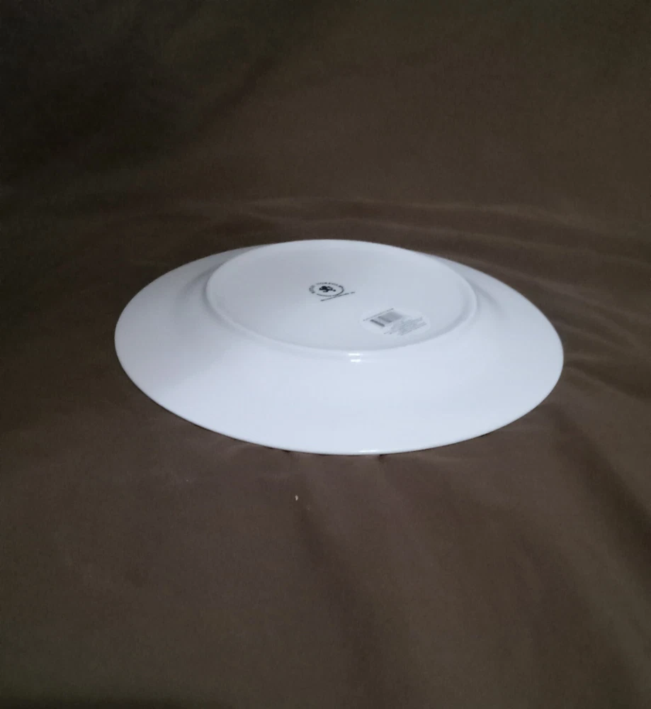 This Royal Norfolk Greenbriar International dinner plate is perfect for any occasion. The 10.5-inch round plate features a solid white. It is microwave and dishwasher safe, making it convenient for everyday use. The plate has no antique or vintage features and is perfect for adults. It is machine washable up and is an original, licensed reproduction. The plate is ideal for serving chop dishes and is perfect for all occasions. They are new. You can see tag om back of plate in pics, but they have been in storage for an extended period of time No damage of defects