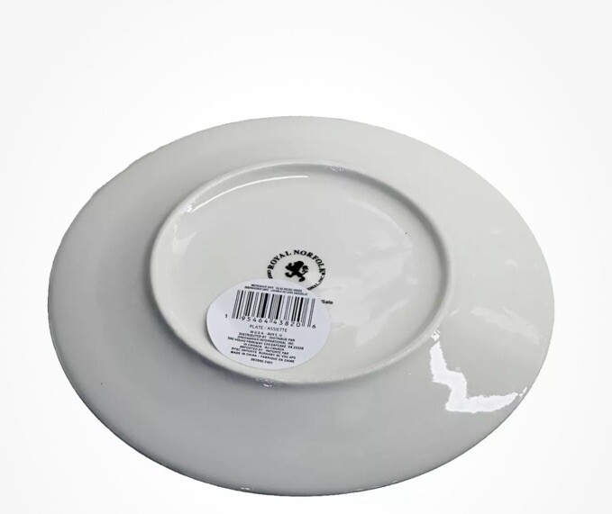 The Royal Norfolk Lemon Floral Salad Plate features a contemporary round shape with a 7.5-inch diameter and a glossy finish. The plates are adorned with a vibrant blue rim and a floral pattern, making them perfect for summer, casual, or all occasions. They are microwave and dishwasher safe, making them convenient for everyday use. This set includes two decorative plates from the Summertime product line, manufactured in 2024 in China by Royal Norfolk.