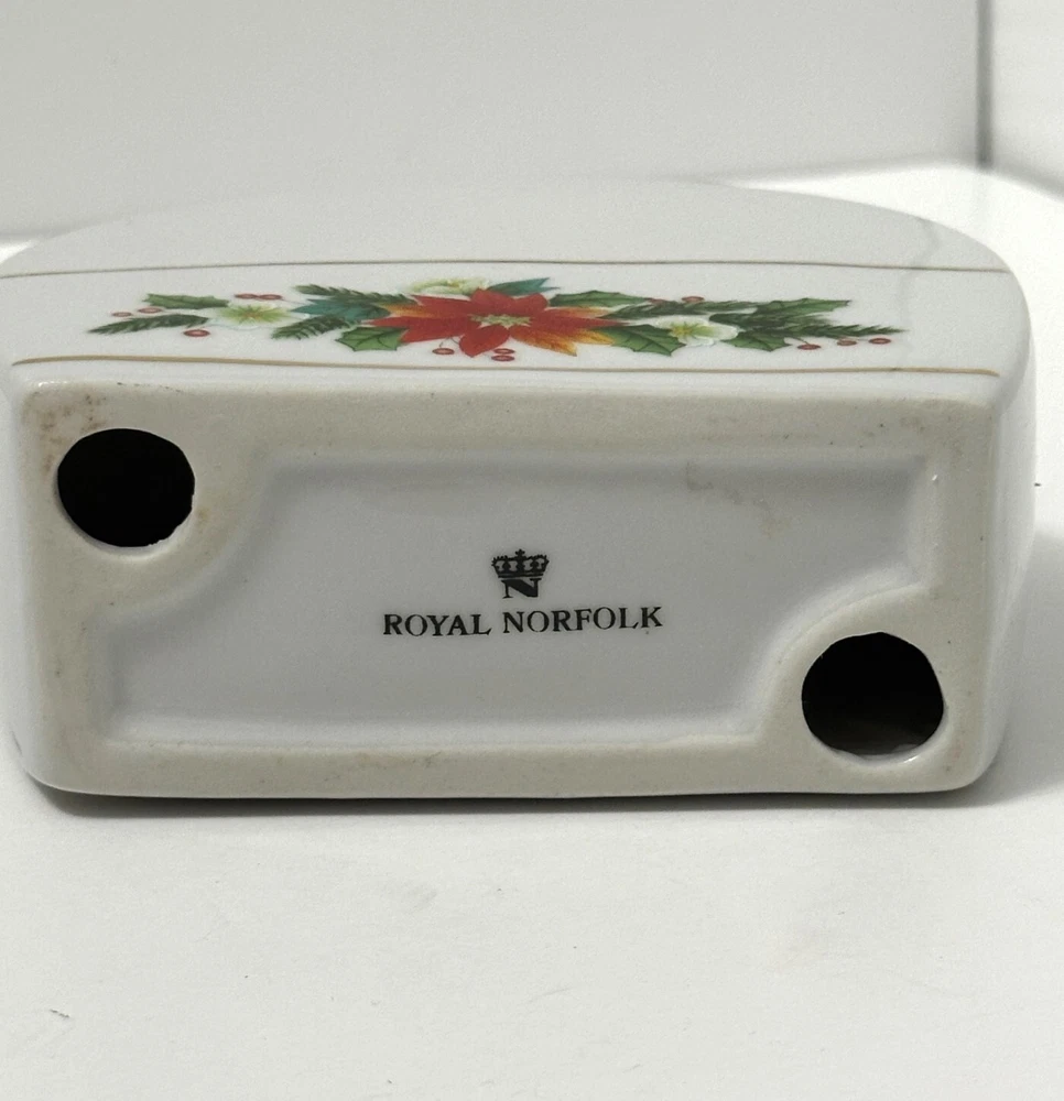 Pattern: Poinsettia Country/Region of Manufacture: Unknown Brand: Royal Norfolk Finish: Glossy Material: Ceramic Custom Bundle: No Theme: Christmas Number of Items in Set: 1 Occasion: Christmas Handmade: No Model: Napkin Holder Style: modern Tags2: Royal Norfolk Festive Tableware Ceramic Decor Christmas Decor Tags3: Holiday Accent Table Centerpiece Seasonal Decor Color: White Tag: Poinsettia Decor Christmas Table Holiday Napkin Holder Department: Adults Type: Napkin Holder Seller Notes: “Pre-Owned in great condition” Features: Decorative