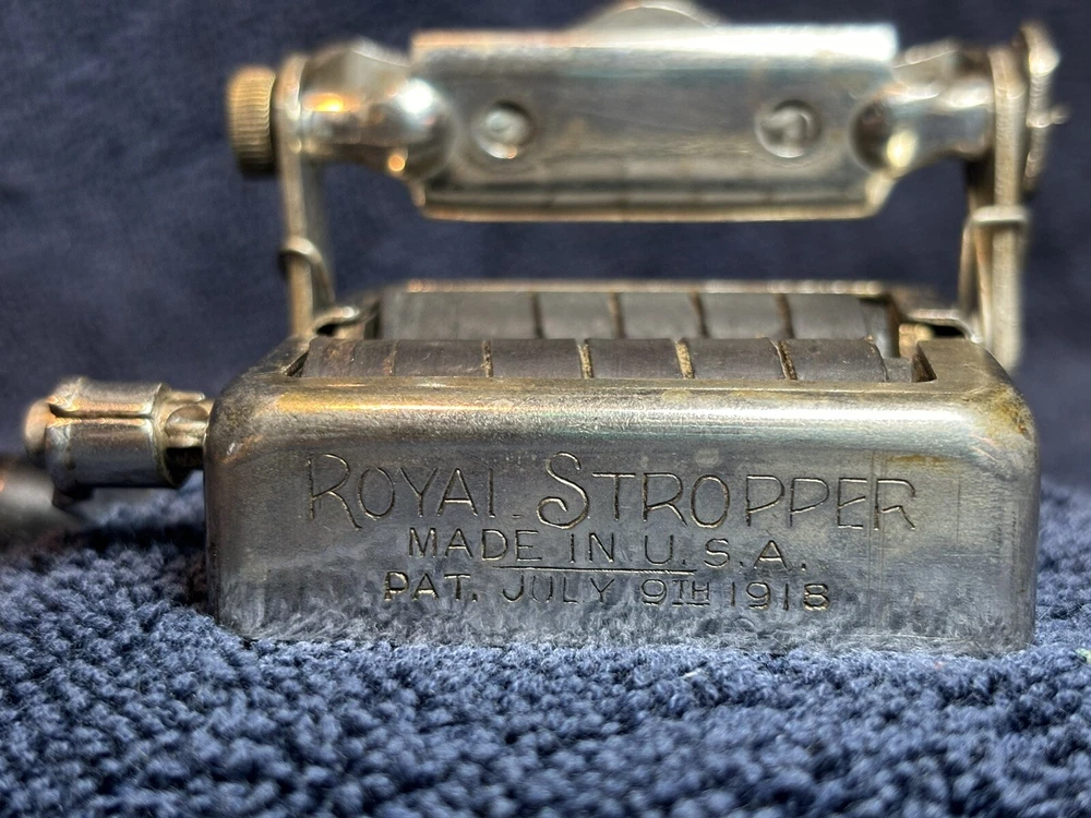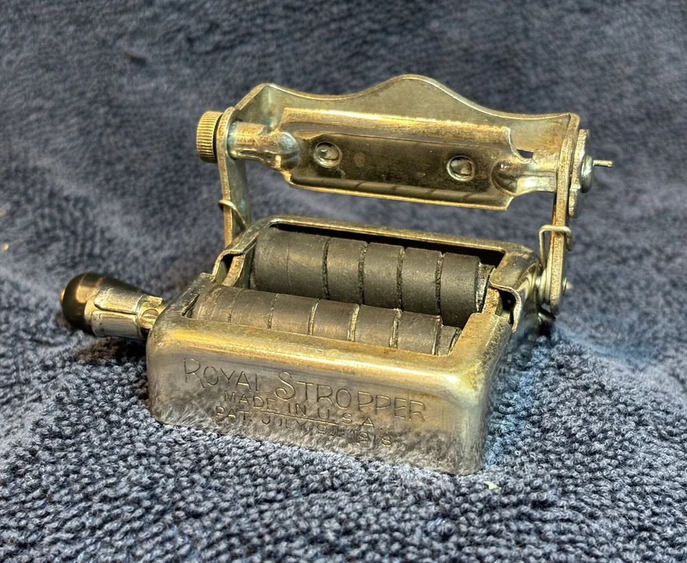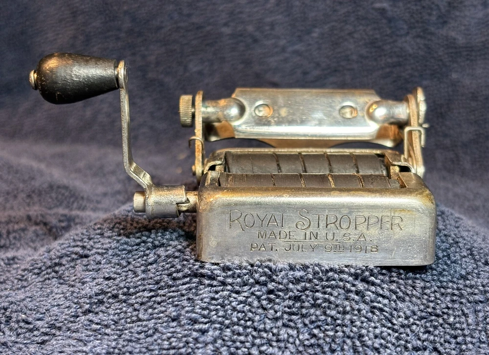 This is a beautiful Antique Royal Stropper for double edge razor blades made in U.S.A. Patent July 9th, 1918. Perfect for any avid collector of shaving accessories. If you have any questions, please feel free to send a message.