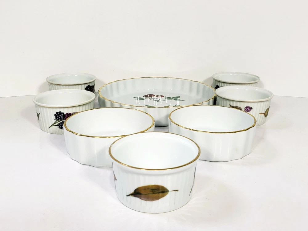 Absolutely love this elegant set! The porcelain is high-quality, looks pristine, and works perfectly for both sweet and savory dishes. The variety of sizes is super handy—great for quiches, custards, or even small sides. Each piece is in flawless condition, no flaws at all. Adds a touch of classic charm to any table. Highly recommend!
