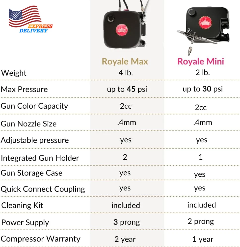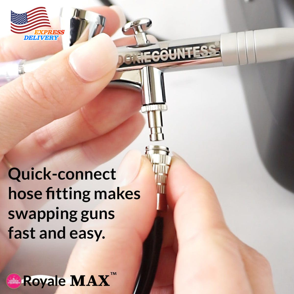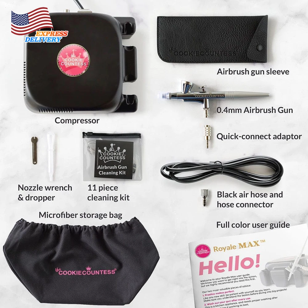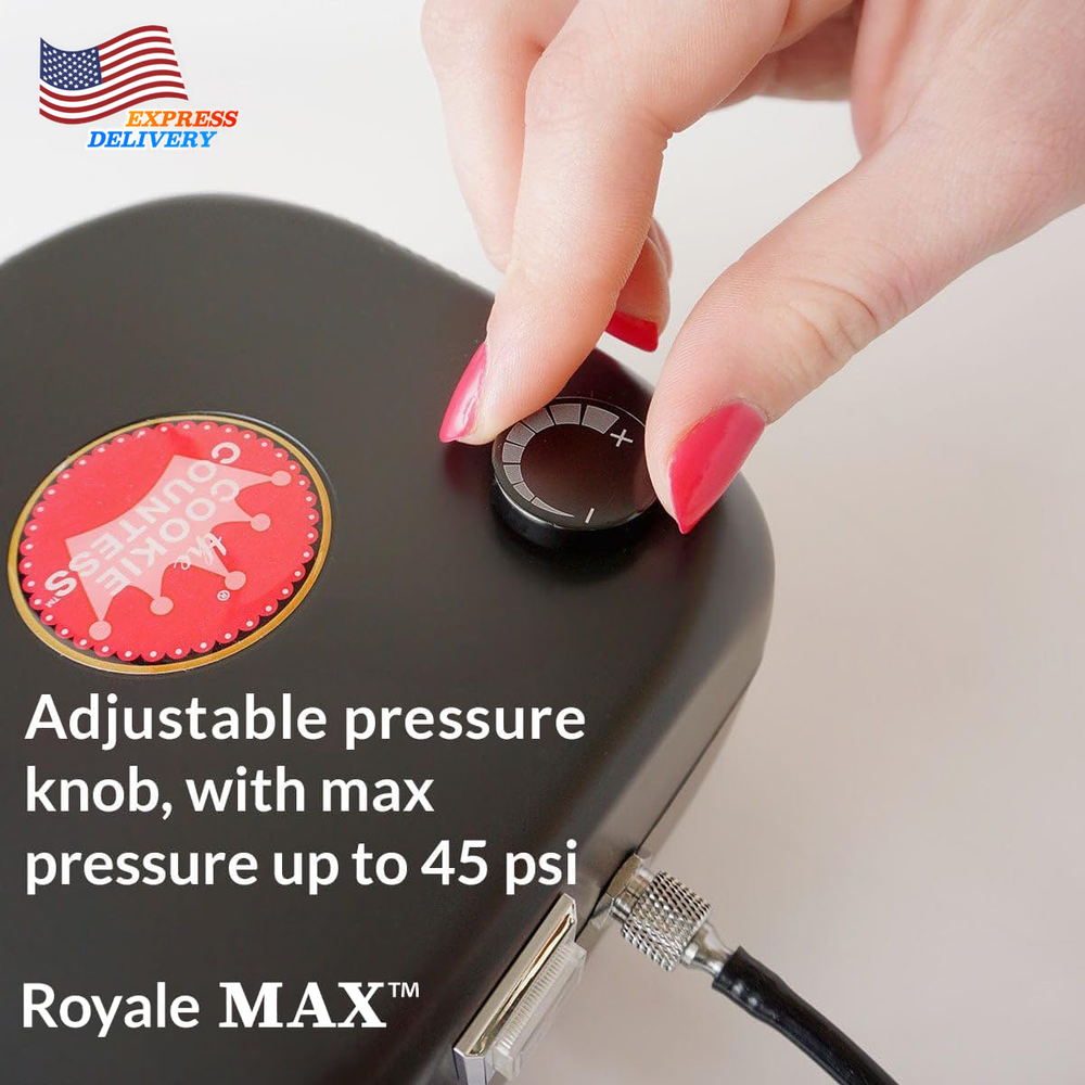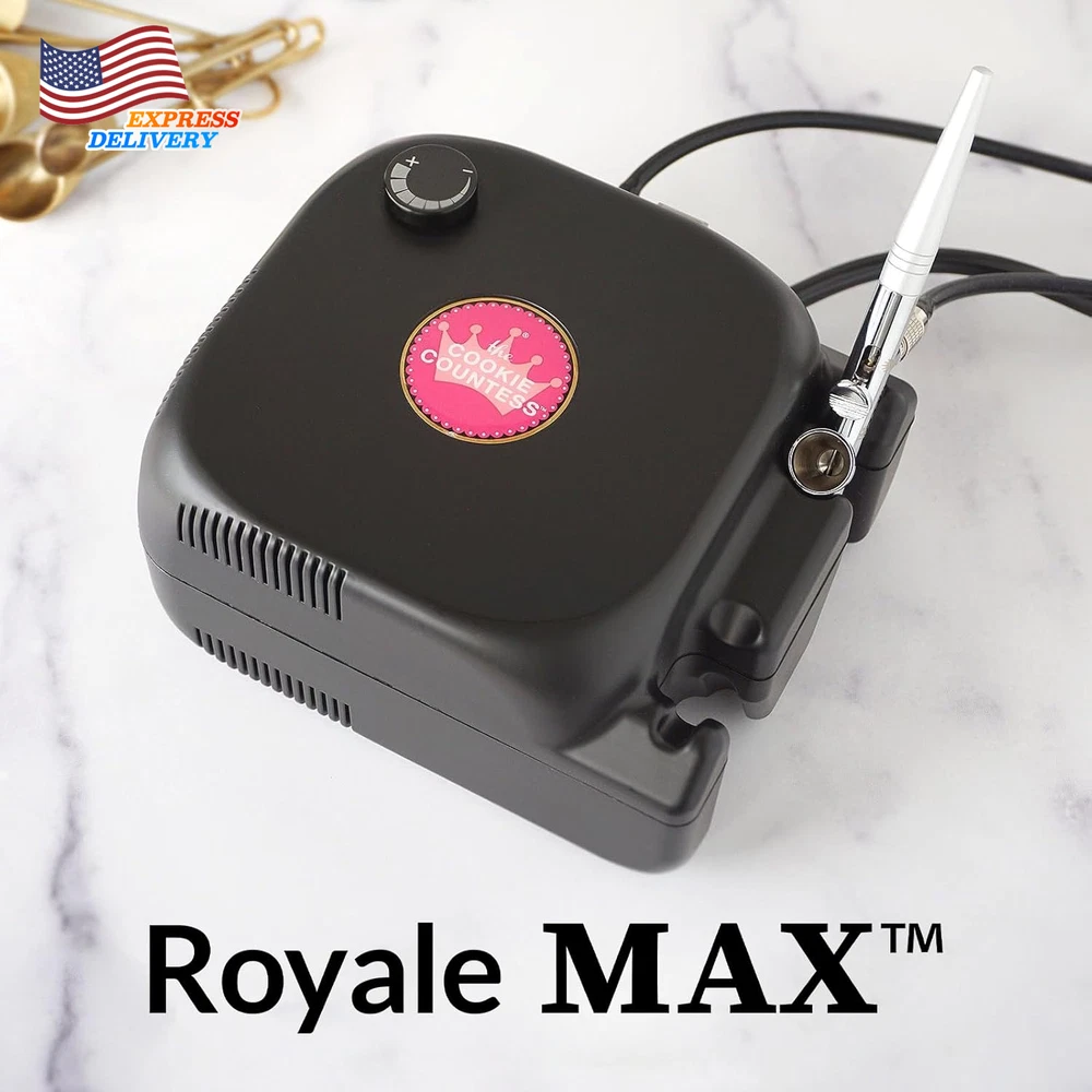 Store New Arrivals Add to Favorite View Feedback Contact Royale Max Airbrush System Description Item model number 2022 Item Weight 3.89 pounds Product Dimensions 5.75 x 6.25 x 3.75 inches Royale Max Airbrush System. Designed from the ground up for decorators. This is an airbrush system like you've never seen before. We took everything we knew from 10 years of professional airbrushing to build a system for high volume bakers. The Royale Max Airbrush System will let you achieve professional airbrushing results, whether you are a beginner or a more experienced baker. Perfect for cookies, cakes and other desserts, use it freehand or with any of our design stencils. Compressor body weighs less than 4 pounds. Higher pressure (adjustable up to 45 PSI) produces a finer spray; quickly cover larger surface areas. Single-action airbrush has a 2cc fluid cup capacity for your airbrush color and .4mm nozzle, the ideal size for most projects. Quieter motor than comparably powered compressors. Rubberized feet help to reduce vibration. Quick-connect hose fitting makes swapping fast and easy. Adjustable pressure knob. Two integrated holders. Airbrush storage case. Easy to assemble and clean. Additional sold separately. Product description The Cookie Countess The Cookie Countess Royale Max Airbrush System Meet the Royale Max Airbrush System! Designed from the ground up for decorators, this is an airbrush system like you've never seen before. We took everything we knew from 10 years of professional airbrushing to build a system for high volume bakers. The Cookie Countess Royale Max Airbrush System will let you achieve professional airbrushing results, whether you are a beginner or a more experienced baker. Perfect for cookies, cakes and other desserts, use it freehand or with any of our design stencils. See what customers are saying! Linda - Excellent Machine! "The product was very well packaged. The instructions were clear. It was everything I expected and more!" Angela - Love it! "I am a hobby baker and wanted to elevate my cookies by adding airbrush details. This machine is great for a beginner like myself! So easy to use! (All of the videos were very helpful too!!)" Megan - So easy! "’I'm new to airbrushing and got this one to try and it is so user friendly! I’m obsessed." Compressor weighs less than 4 lb Pressure adjustable up to 45 PSI .4mm nozzle Quieter motor Rubberized feet Quick-connect hose 2cc fluid cup capacity Two integrated holders Here's what's inside The Royale Max Airbrush System box! Compressor Body Nozzle Wrench & Dropper 11 Piece Cleaning Kit Microfiber Storage Bag Airbrush Sleeve 0.4mm Airbrush Quick-Connect Adaptor Black Air Hose and Hose Connector Full Color User Guide See what you can create! What's the difference between the Royale Max and Royale Mini? Let's compare! About The Cookie Countess Hillary Ramos decorated her first cookie in January of 2011 for her son's second birthday. Little did she know, she would become The Cookie Countess, and it would turn into a new passion and career path for her and her family. After starting as a hobby decorator, Hillary began experimenting with stenciling her cookies and in 2013 decided to design and sell her own stencils. Starting with only a few designs, The Cookie Countess grew to have over 800 stencil designs. Hillary’s husband Jon joined in the cookie fun in 2013 and has helped grow their business into a one-stop shop for cookie decorators . Over the years The Cookie Countes s expanded into offering custom-designed products like the Precision Rolling Pin, Royale Max Airbrush System, Magic Screen, Collapsible Cookie Rack, and much-loved supplies such as cookie cutters, gel colors, paint palettes, specialty packaging , and more. In 2023, The Cookie Countess opened their “Bakeshop” - a kitchen and classroom space in Warwick, RI . We now offer beginner and intermediate cookie decorating classes , as well as private group classes , perfect for friends or corporations looking for a fun activity . Our values have stayed the same throughout our growth. We pride ourselves on having lightning fast fulfillment , and providing a great product at a great price. ABOUT US We offer the best prices around on high quality products. Our E-store includes media such as books, movies, music and games while offering electronics, toys, sporting apparel, clothing, tools, general home, garden items and more. SHIPPING We are always working hard to ensure your package arrives as soon as possible. Please understand that some factors like weather, high postal traffic, and the performance of shipping companies are outside of our control. We offer free shipping to the lower 48 states and ship within 2 business days of payment, usually sooner. We do not accept P.O. Boxes. Please provide a physical address. For shipping outside of the continental USA, we only use eBay's Global Shipping Program.The item is shipped to KY and then sent to the rest of the world. International customers are responsible for all duties and taxes. Continue to check out in order to calculate costs for shipping the item to your country. Messages regarding eBay's Global Shipping Program MUST be directed at eBay EXCLUSIVELY. RETURNS We offer a 30-Day Return Policy on items which you are not completely satisfied with. You have the option for a full-refund or an exchange of the item. No returns are available on items shipped outside of the USA. PAYMENT We accept PayPal. CONTACT US This page content is yet to come Please ad us to your favorite seller and visit again later Thank You CUSTOMER SATISFACTION We try our very best to make sure every customer is completely satisfied. If there's a problem, message us! We're happy to help. WE ACCEPT Copyright © 2021 AutoDS. | All Rights Reserved