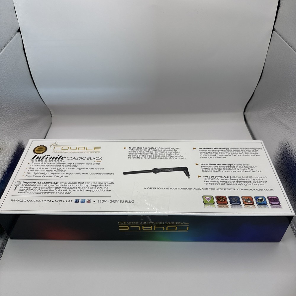 The Royale PRO Professional Tourmaline Curling Iron 19MM is a high-quality hair styling device designed for both men and women. With a sleek black design and a cool tip feature, this electric curling iron/wand is perfect for all hair types. The use of tourmaline heating plates ensures quick and efficient styling without causing damage to the hair. The Royale brand is known for its reliability and this product lives up to that reputation, making it a must-have for anyone looking to achieve professional-looking curls at home.