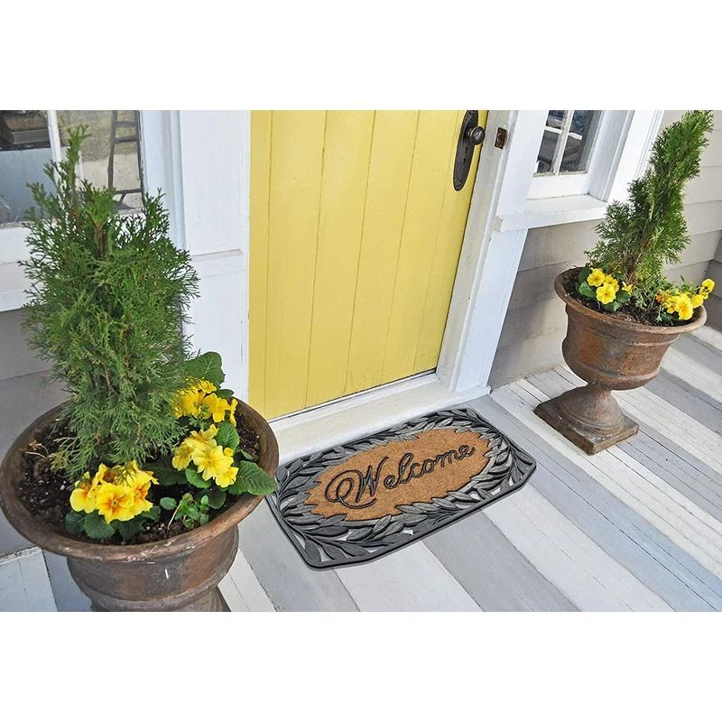 You may also like Anti-Fatigue Mat 18”x30” Navy Eco PVC Foam Resilient Support Beveled Edges New 26.16 USD 27.54 USD Free shipping 5% off Keeps your floor clean when you decorate your entryway with this contemporary doormat, which includes a sturdy rubber backing to help in keep the rug in place & prevent slips. The attractive design of this rubber Doormat creates a welcoming entrance for your guests & the durable coir material holds up to lots of foot traffic. Recommended for outdoor use in covered areas. Vacuum or shake the mat regularly for longer life. NEWLY DEVELOPED RUBBER AND COIR MOLDED DOOR MAT: This is a completely newly designed door mat, suitable for both single and double doors. The large size door mat is made of Natural coir fiber and high quality rubber. This coir door mat has a large coir area to clean and wipe your shoes which keeps your house clean. Molded door mats are stronger and more durable lasting thrice as long as regular door mats. Each outdoor rug is QC inspected for 20 quality check points. HEAVY-WEIGHT MOLDED RUBBER BORDER DOOR MAT: The heavy rubber backing makes sure the doormat in anchored to its place and does not get blown away by wind or tear apart by aggressive wiping. SUPER TOUGH DOOR MAT: constructed with thick coir bristles on the topside molded with rubber base, the doormat is built tough by nature; its strong bristles create a wiping area and the rubber base adds to the sturdiness. This premium outdoor rug will help stop dirt, debris, moisture and other particles from being tracked into your home and will last at least 3 times longer than regular door mats. PLACE WELCOME MAT BEFORE EVERY EXTERIOR DOOR: Use this welcome mat on a patio, in a garage, laundry room, entryway, and anywhere there is high traffic from outside. Recommended to be used in covered outdoor areas. PERFECT SIZE DOORMAT FOR YOUR LARGE ENTRYWAY: Front doormat measures 38" x 23" and is 0. 6" thick to allow your door to easily pass over the mat without getting stuck. This outdoor mat is ideal for both single and double door entrances. ENVIRONMENTAL FRIENDLY OUTDOOR RUG: made from 100% Hard Wearing Coir Eco friendly Rubber base . These doormats are completely Biodegradable & compostable. Adds a unique touch to your front door or back door while being very functional. Only for use in covered outdoor areas. Do not expose directly to sunlight or rain. You may also like 5/8 In X 100 Ft Garden Contractor Grade Hose Heavy Duty Kink free Durable Lawn 85.6 USD 90.11 USD Free shipping 5% off 10 Pcs Cookware Set Non Stick Pots W/Lid Dishwasher Safe Home Kitchen Cooking US 44.76 USD 47.12 USD Free shipping 5% off 30QT Rolling Hard Side Cooler Telescopic Handle 42-Can Capacity Camping Outdoors 34.38 USD 36.19 USD Free shipping 5% off 30 Cans 24 L Electric Cooler Thermoelectric Car Cooler Portable Car Travel Grey 94.69 USD 99.67 USD Free shipping 5% off 4' x 6' Instant Canopy Shade Shelter Height Adjustable Portable Beach Outdoor US 63.99 USD 67.36 USD Free shipping 5% off Wood Rectangle Coffee Table Sturdy Living Room Sofa Side Den Office Furniture US 44.75 USD 47.11 USD Free shipping 5% off Wood 28"-42" Swing Baby Safety Gate Pet Dog Fence Child Walk Thru Door Stairway 43.15 USD 45.42 USD Free shipping 5% off Wall Cabinet Stackable Storage Adjustable Shelf Workshops Garages Laundry Rooms 172.25 USD 181.32 USD Free shipping 5% off 6 Tier Storage Tower Shelving Shelves Baskets Rack Organizer Bathroom Steel New 29.19 USD 30.73 USD Free shipping 5% off 2.2 Cu Ft 1200 W Countertop Microwave W/ 6 Menus Auto Defrost Stainless Steel US 299.05 USD Free shipping Modern End Side Table Nightstand Bedside Table Shelf Living Room Rustic Gray New 71.65 USD 75.42 USD Free shipping 5% off Rectangular TV Stand Entertainment Center Media Console Table Sturdy Living Room 47.87 USD 50.39 USD Free shipping 5% off