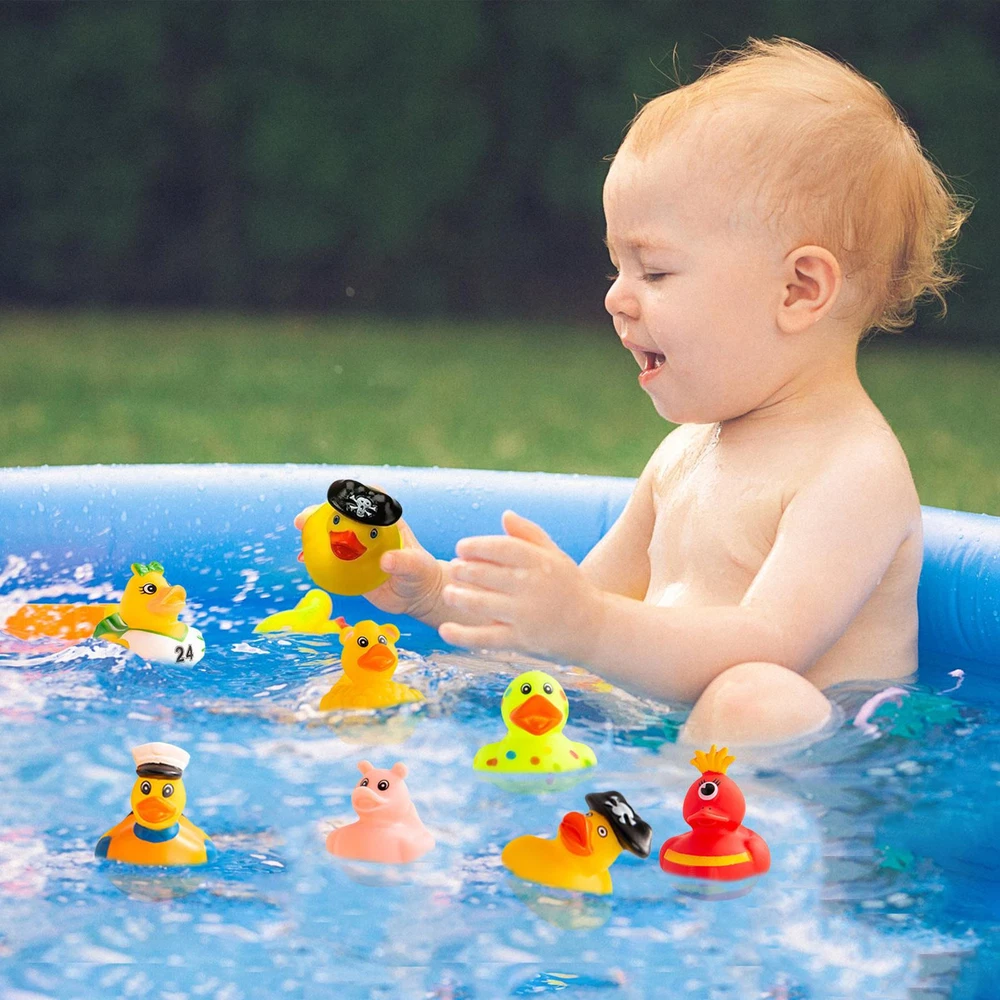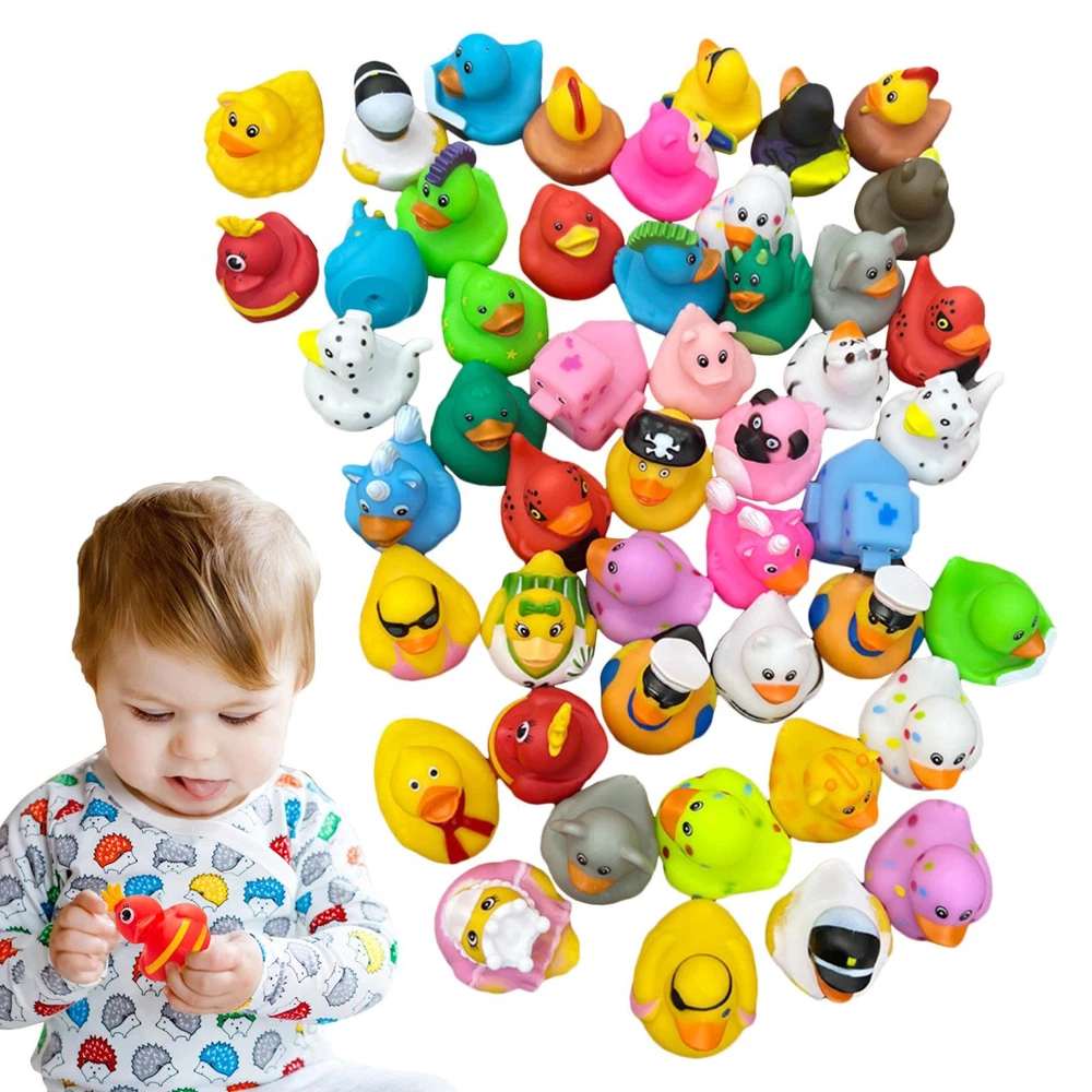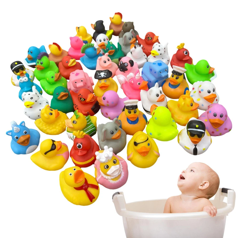 Many Colorful Ducklings: Rubber Ducks have a realistic shape that will easily attract children's attention. They come in different colors and shapes, making bath time more fun and enjoyable for your little ones. Rubber Material: Mini Ducks are made of rubber material, sturdy and reliable, child-friendly, waterproof, and not easy to fade, you can use it with confidence. Portable and Convenient: Small Rubber Ducks are small in size, light in weight, and easy to carry. It can be put into your pocket or backpack, and you can use it anytime, anywhere when you go out. Amazing Gift: These Assorted Rubber Ducks are sweet gifts for children's birthdays, Christmas, Valentine's Day, Thanksgiving Day, and other anniversaries. Wide Applications: You can use them for bathtub fun, playing outside, or swimming pool games. Mini Rubber Ducks are also ideal for school carnivals or parties, where you can give them away as prizes. Features: Rubber Ducks come in different colors and shapes, making them fun and attractive. They are made of durable material that is not easy to fade, so you can enjoy them for a long time. You can put them into your pocket or backpack and take them anywhere you go. Whether you are playing outside or relaxing at home, they will bring you joy and comfort. They are also exquisite gifts for your friends and family who love cute and colorful toys. Specification: Product Name: Rubber Ducks Material: Rubber Size: about 5-6cm/1.97-2.36inch single Weight: 15g single Remarks: Mixed packs, colors may be repeated Product List: Rubber Ducks*20pcs