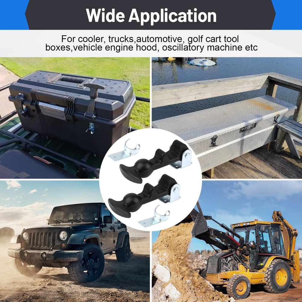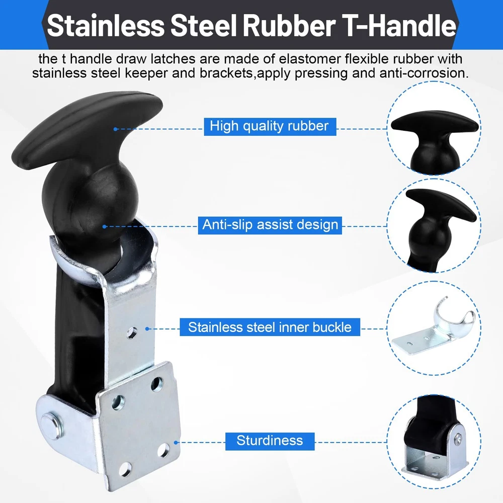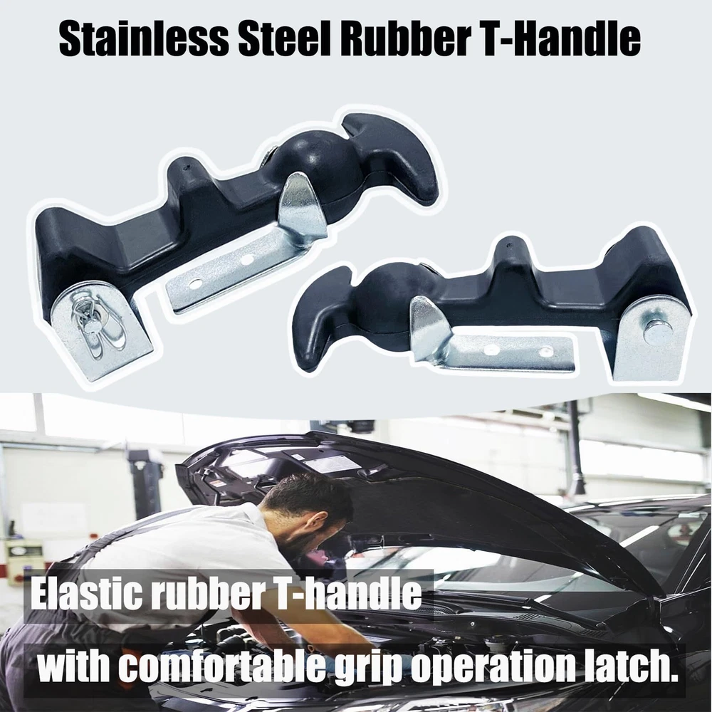 Rubber Flex t handle Includes: 2 pieces of 4.9 inches rubber flexible draw latches with stainless steel brackets. These rubber latch t handle are practical and strong, providing excellent value for money. Hood latch Strong Practicability: Rubber hold down has impressive elasticity making it ideal for handling vibrations and holding joint preloads. It ensures a safe and reliable fastening solution. Rubber t handle Versatile Usage: These t handle hasp are ideal for hoods, vehicle engine hoods, machine hoods, oscillatory machines, battery boxes, and compartment doors. Their versatile design allows for both vertical and horizontal mounting, offering flexibility for your specific needs. T-Handle Hasp are made with flexible rubber, and quality materials to ensure long-lasting performance and resistance to wear and tear. Rubber hood latch are designed for easy installation, saving you time and effort while providing a safe and secure fastening solution.